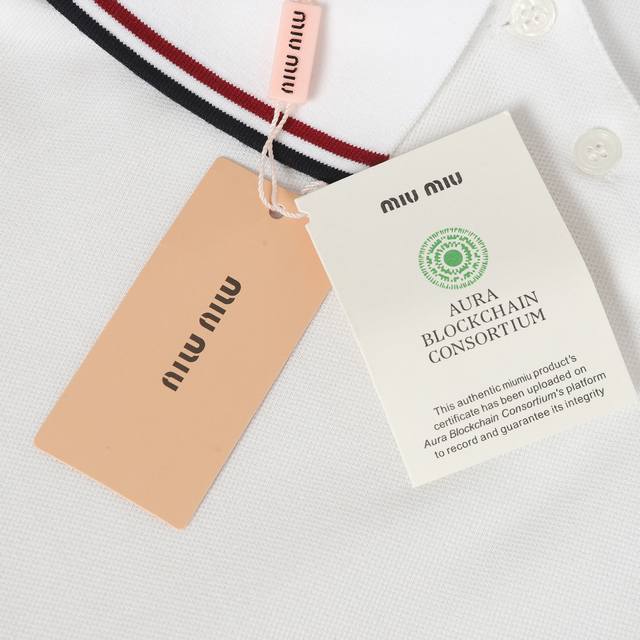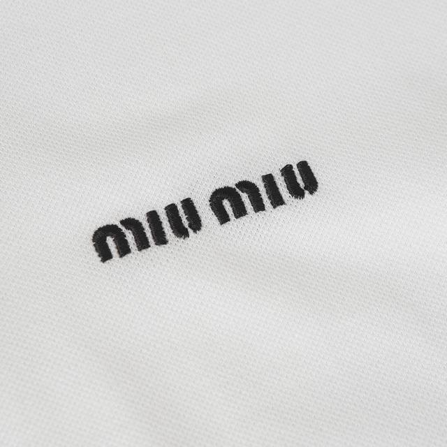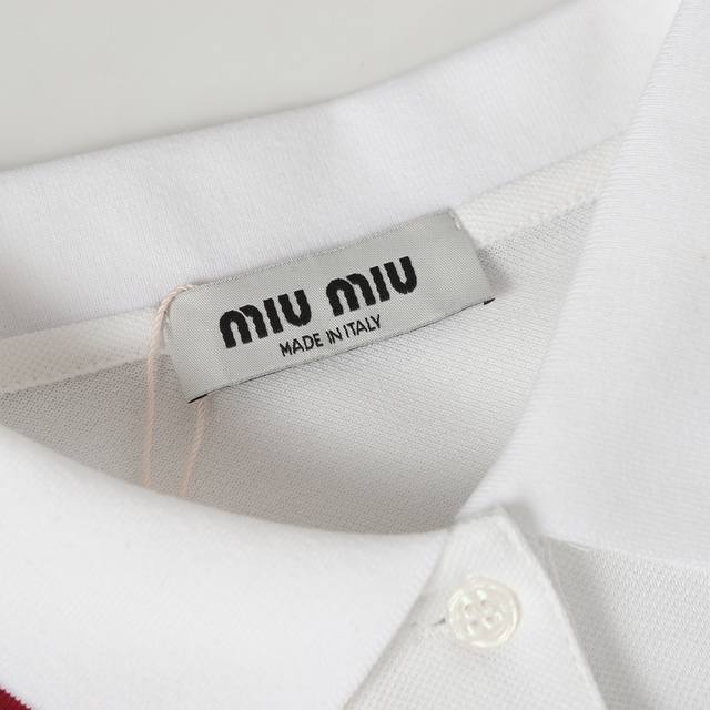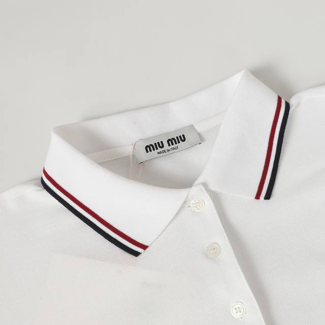 Miu Miu Embroidered Collar Color-Blocked Olois Shirt. Fabric: 50-count double piqu