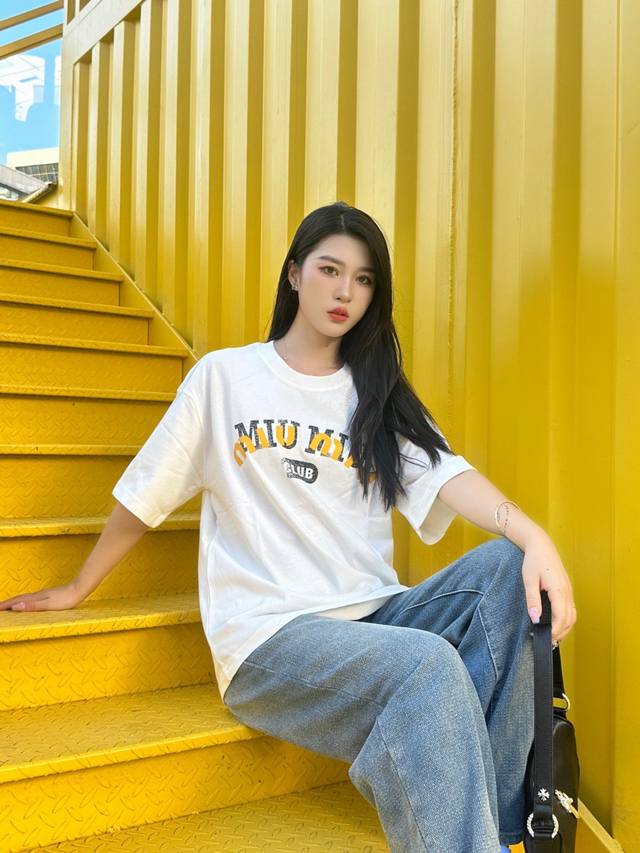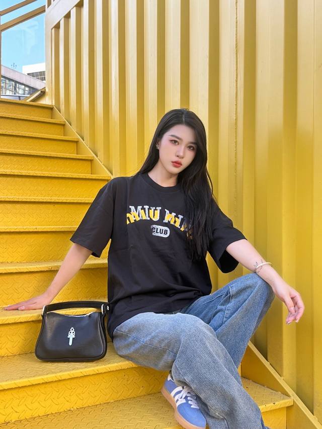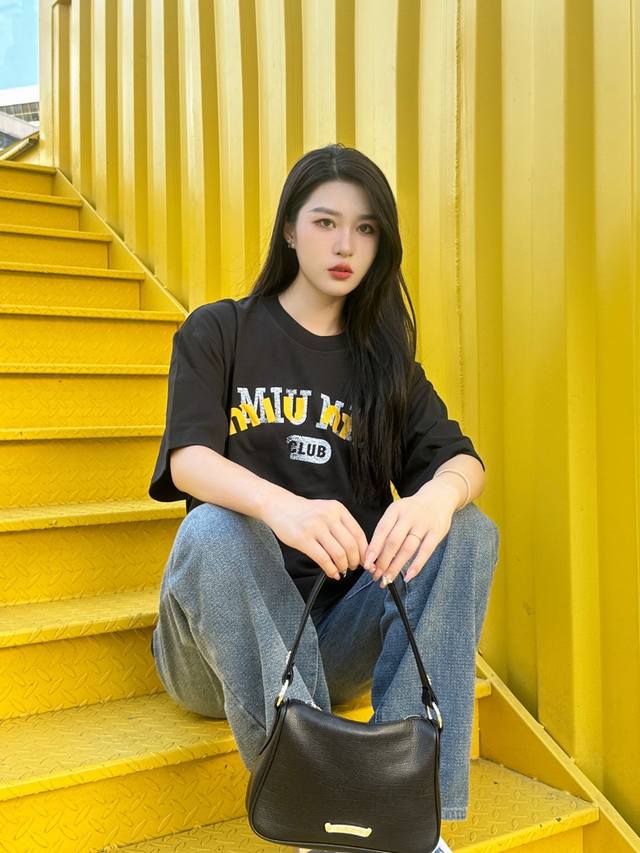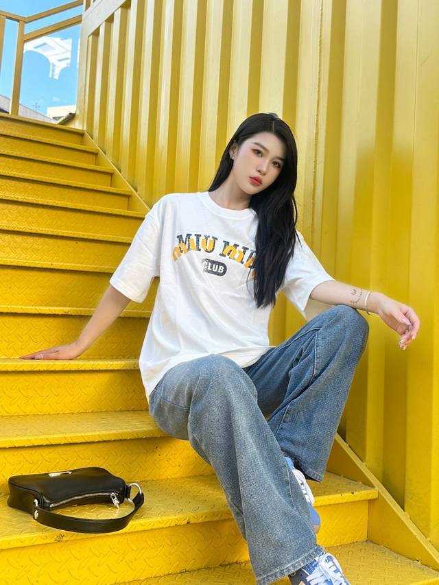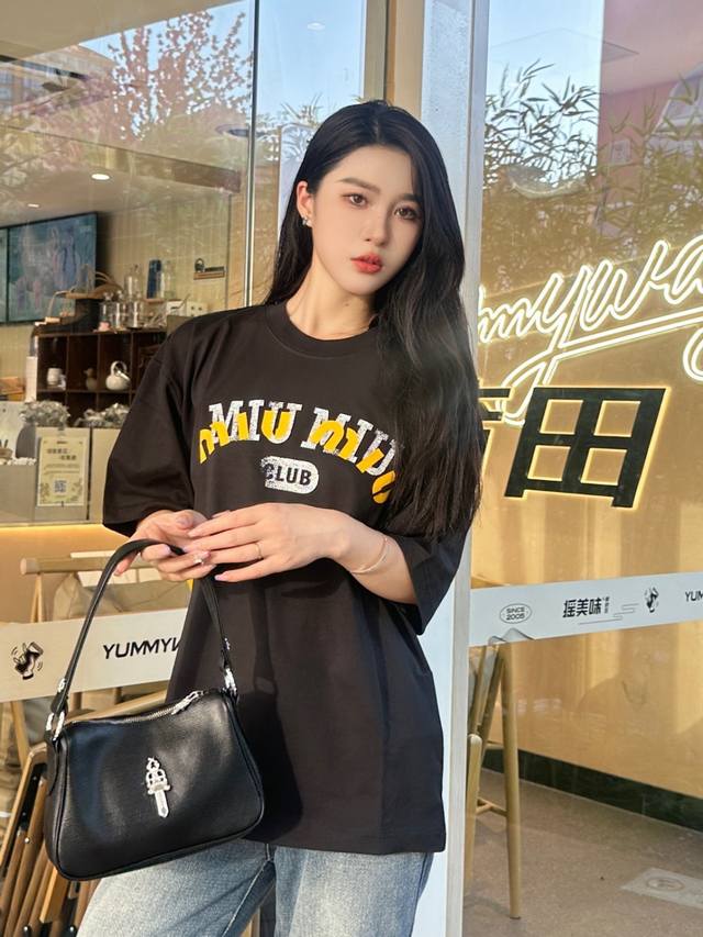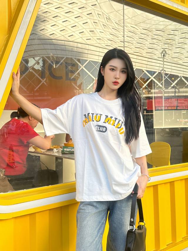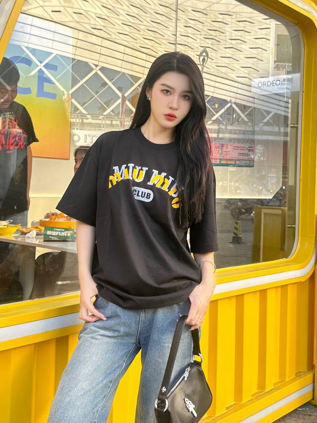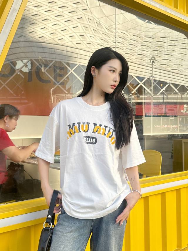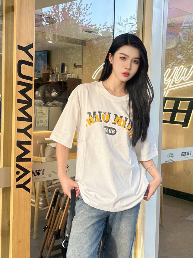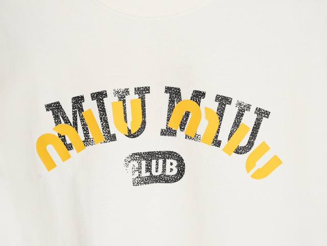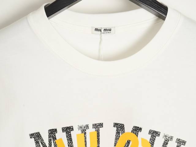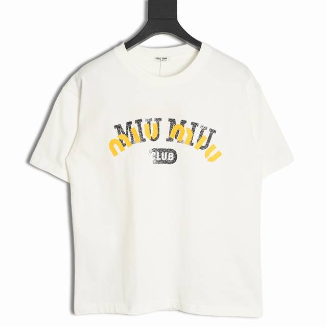 Miu Miu fuzzy letter print couple round neck short-sleeved T-shirt - top version