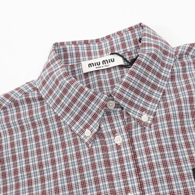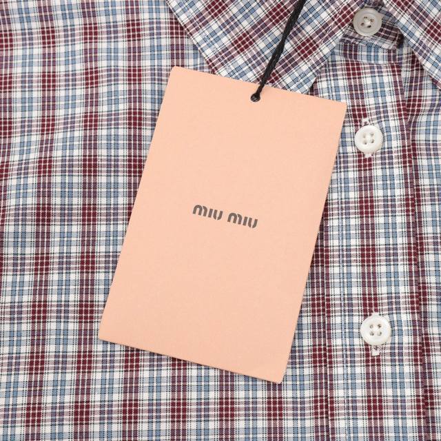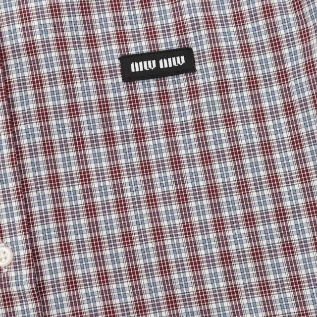 Miu Miu Mm brown and blue fine check long-sleeved shirt