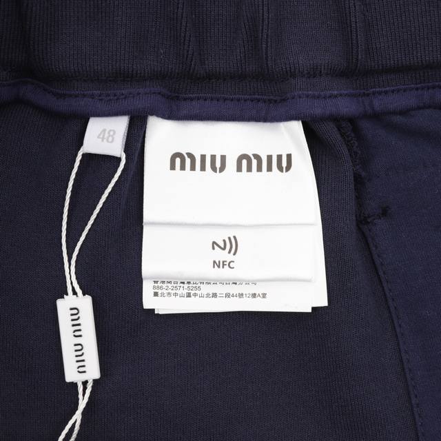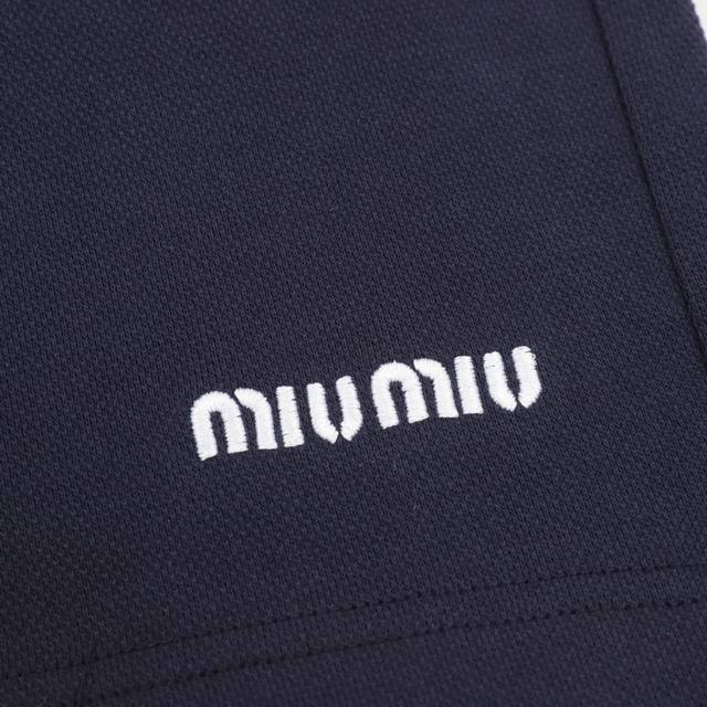 Miu Miu Mm Embroidered Small Logo White Stripe Pique Shorts Pique is made of 100
