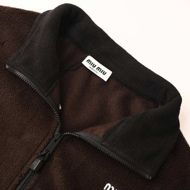 Miu Miu Mm Fleece Stand Collar Zip-Up Jacket
