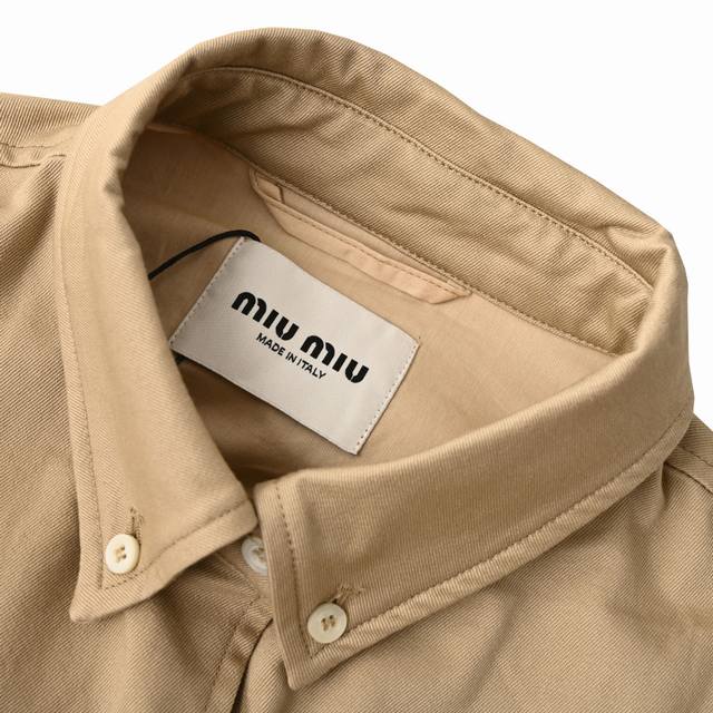 Miu Miu Mm Khaki Woven Waist Embroidery Button-Up Jacket Custom-dyed double shut