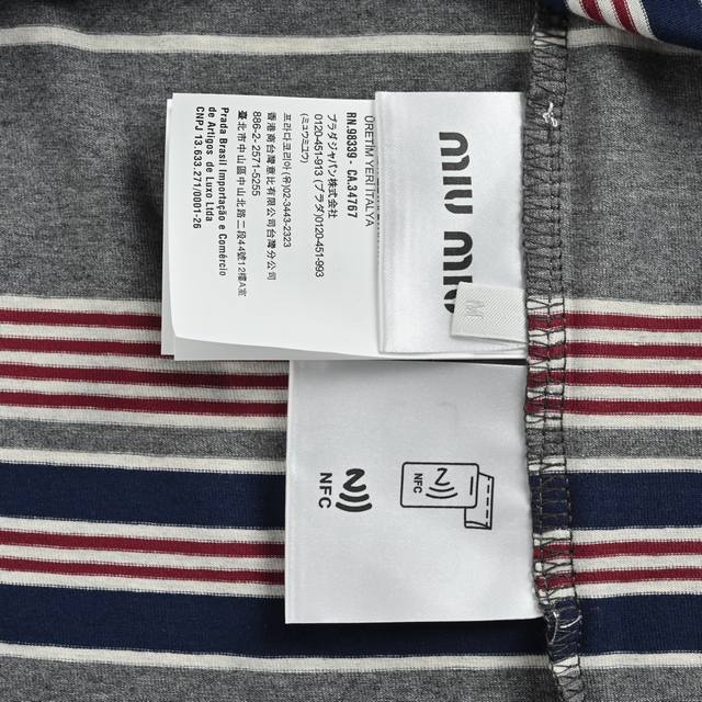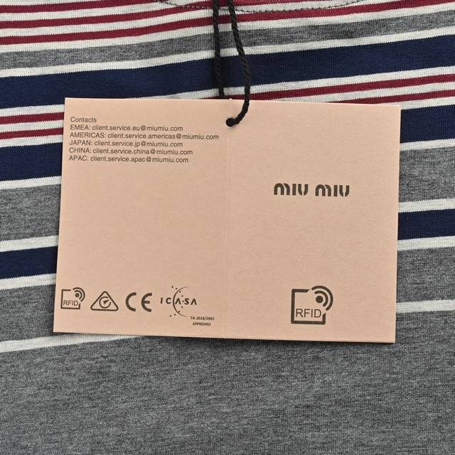 Miu Miu Striped Color-Blocked Long-Sleeve T-Shirt DDD Custom-made horizontal striped cotton poplin, returning to traditional craftsmanship. The workmanship is complex, tedious, slow, and has high wastage. Hand-painted infrared lines on the pockets, using infrared technology to accurately position and mark the pockets, retaining the finesse and flexibility of hand-sewing. The fabric is washed for a better feel and texture, is less prone to deformation, shrinkage, and fading. Loose fit DDD Size: Xs-L DDD