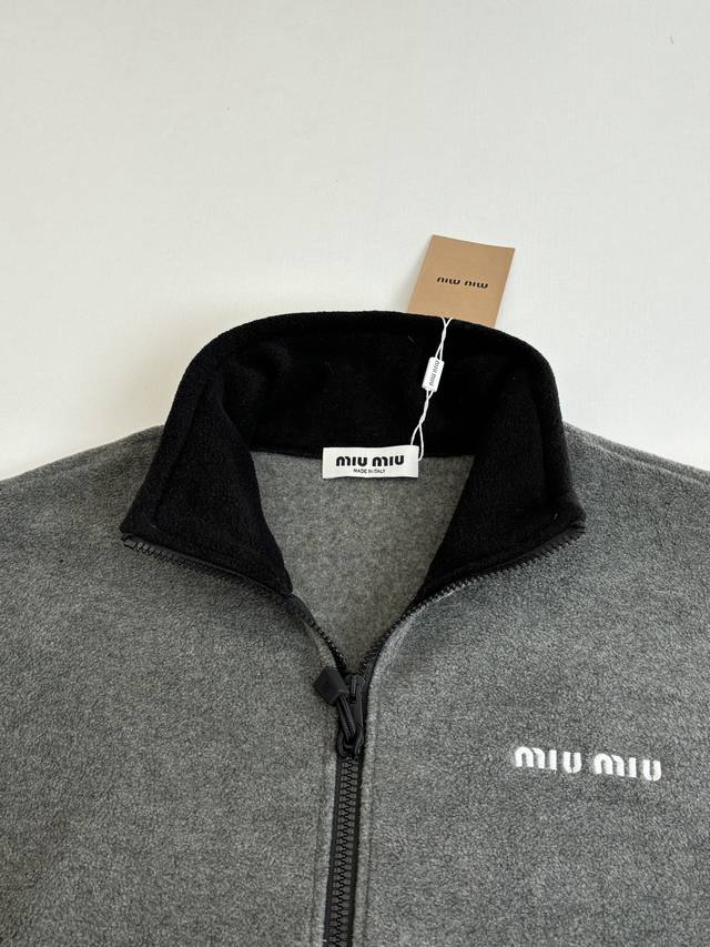 Miumi* Miu Miu 24Fw Zipper Fleece Jacket DDD Originally purchased for 17,600, custom-woven and dyed cashmere-polyester blend fabric, weighing a high 420g, while the thickest on the market is only 360g. The fabric has a fleece feel, excellent warmth and comfortable wearing experience. The only correct heather gray on the market, distinguishing it from pure gray, fleece-gray and other incorrect versions. Separately molded hardware, zipper, logo engraving, and lanyard. The left front panel features Tajima embroidery machine-made lettering, with a full and delicate pattern. Note the layered effect of the letter U; versions with matching stitching on the market are incorrect. Following the original's hidden stitching edging technique, the labor cost is 3 times that of ordinary sewing, leaving no detail overlooked. Three-dimensional tailoring, Os large silhouette, suitable for any body type, highly recognizable when worn, a perfect product. DDD Size: SML XL DDD Size: SL DDD