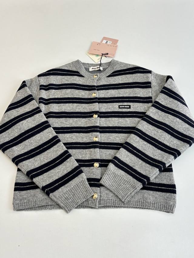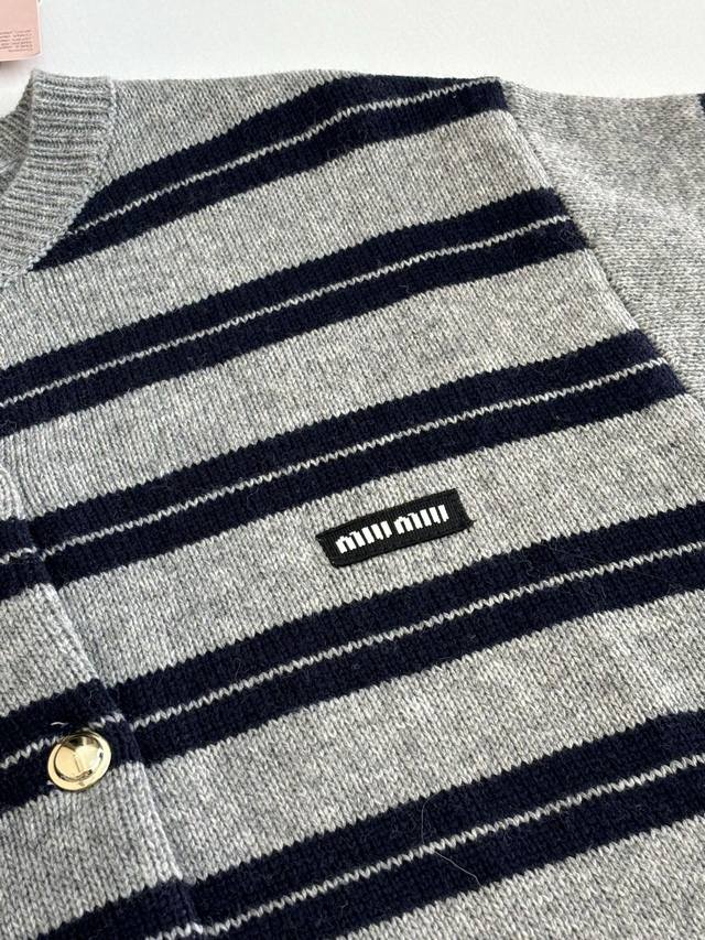 Miumi* MiuMiuFw25 Wool Striped Color-Blocked Knit Cardigan DDD Made of wool blend fabric, adorned with brand logo, youthful striped pattern, round neck, button closure, elastic fit, all tags included DDD Size: 36 38 40 42 DDD