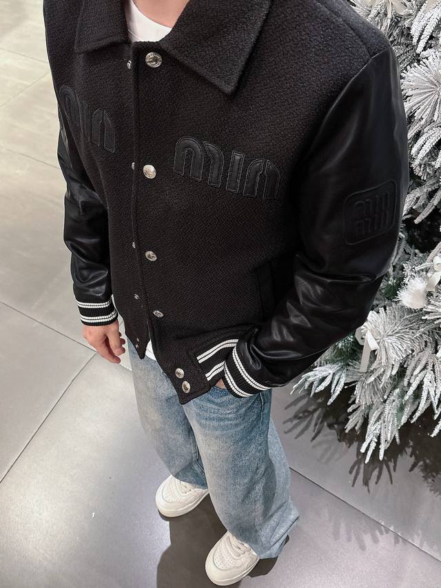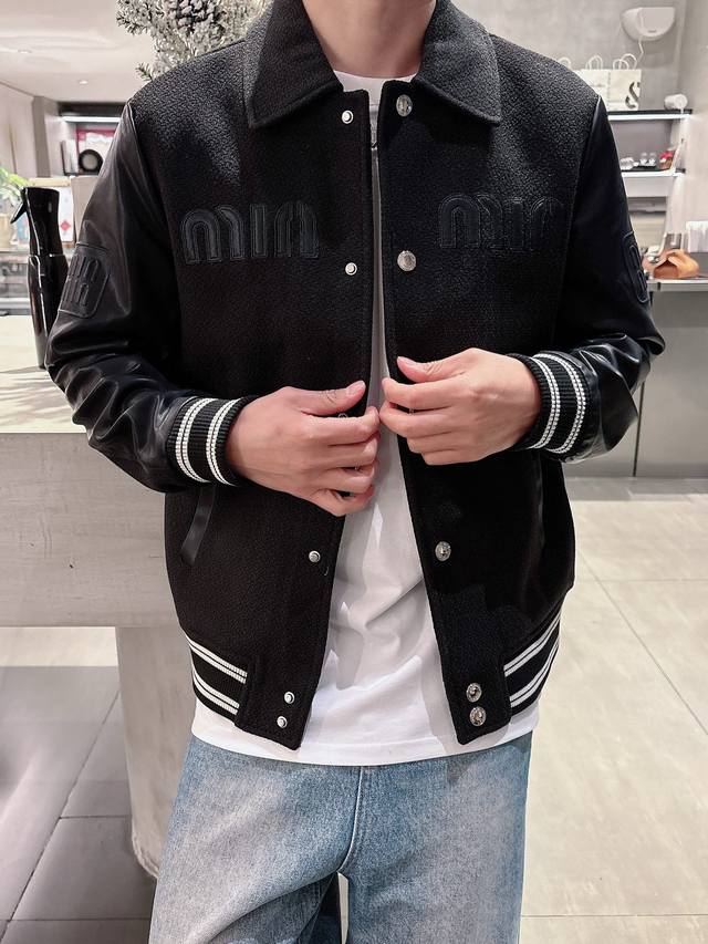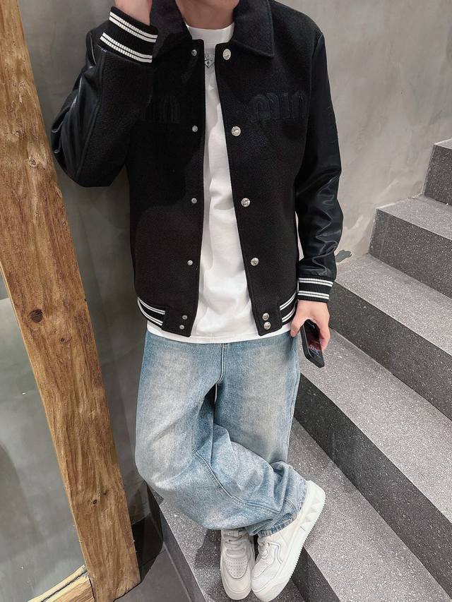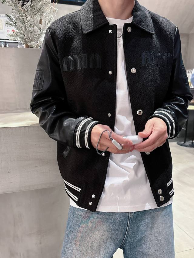 Miumiu 2025 Autumn New Men's Jacket, original single-piece with complete tags, high-end version! Custom-made fabric for superior breathability and comfort, impeccable details, brand elements and design concepts, professional-grade quality. Soft and delicate to the touch! Casual cut, excellent fit! Sizes: M