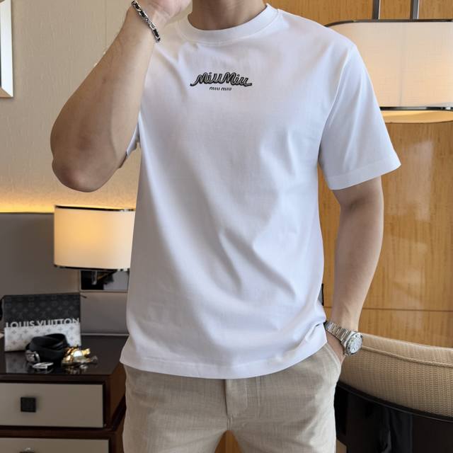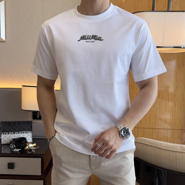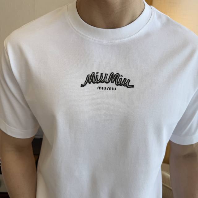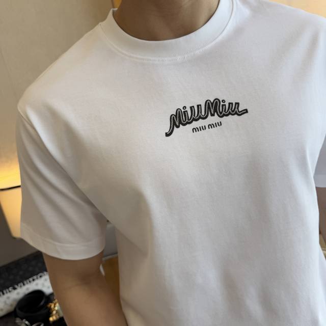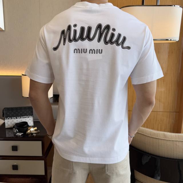 MiuMiu - 2025Ss Year of the Snake Spring/Summer Premium Wide-Sleeve T-Shirt, Official Website Synchronized High-End Quality Custom Made with Top-Grade Long-Staple Cotton Fabric, 1:1 Production by Top Factory, Fashionable Brand Heavy Craftsmanship Logo Design, Soft and Delicate to the Touch, Skin-Friendly and Comfortable to Wear, Versatile and Casual, Looks Great on, A Must-Have for Handsome and Trendy Men. Sizes: M-3XL, Maximum Size: 200 lbs!