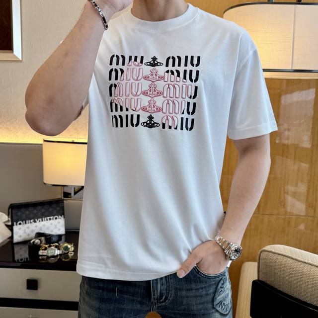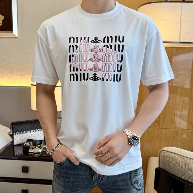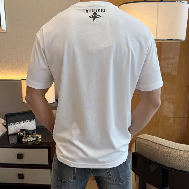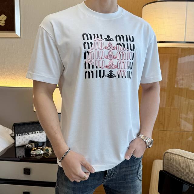 MiuMiu 2025Ss Year of the Snake Spring/Summer Premium Wide-Sleeve T-Shirt, Official Website Synchronized High-End Quality Custom Made with Top-Grade Long-Staple Cotton Fabric, 1:1 Production by Top Factory, Fashionable Brand Heavy Craftsmanship Logo Design, Soft and Delicate to the Touch, Skin-Friendly and Comfortable, Versatile and Casual, Great for a Stylish Look, A Must-Have for Handsome and Trendy Men. Loose Fit: M-3XL, Maximum Size 200 lbs.
