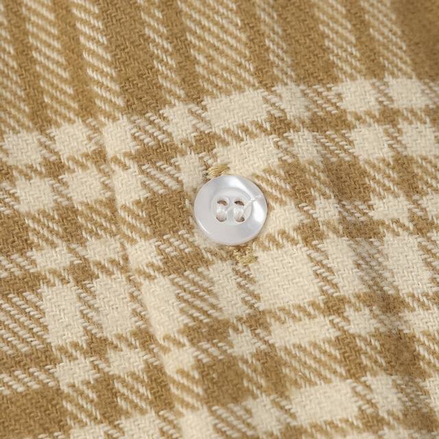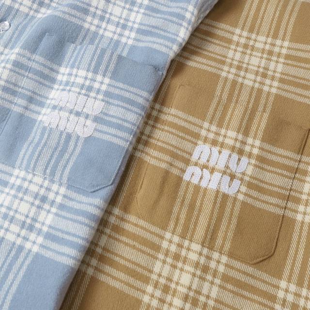 Miumiu 24Fw Brushed Plaid Shirt (Ddd) The outer fabric is a custom-woven plaid fabric of 30% wool blend, 20% cashmere, and 50% cotton. The inner lining is made of lightweight goose down with a cupro fiber filling, known for its comfortable, skin-friendly, and pill-resistant properties. The neckline features a standard double-layered design with the same fabric, ensuring neat alignment of the plaid on both sides. The entire plaid pattern is cut to scale using an infrared laser positioning cutting machine, ensuring precise alignment of the plaid on both sides according to the center placket. The chest pocket also features a separate pattern pieced together to ensure plaid overlap and alignment. Custom-made letter patches are cut using a die-cutting process, first sewn into the mold, then hand-cut out the shapes, and finally stitched along the edges after each letter is perfectly attached. The shirt features independently developed body-colored painted buttons. All three labels and accessories are included. A popular style worn by celebrities and influencers, this shirt is highly recommended. (Ddd) Size: S-XL (DDD)