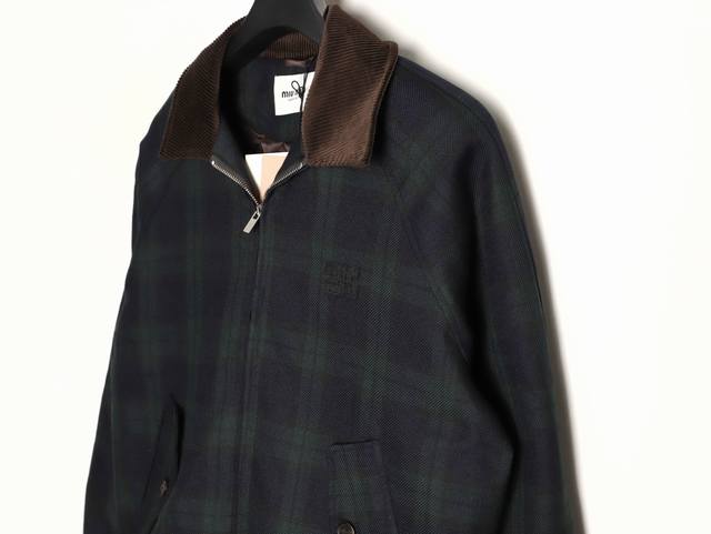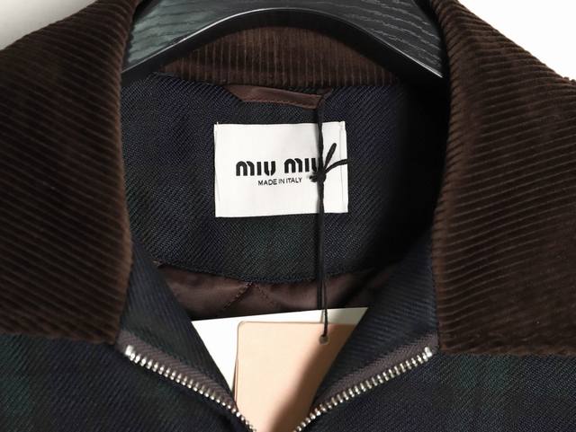 Miumiu 25Fw Checkered Patchwork Cotton Jacket. Made with 50-count 4-ply pure cotton wool, featuring a custom 1:1 checkered stripe fabric. The fabric is multi-colored and then woven using a 4-ply winding technique. Lining: High-density twill silk-cotton interlining, custom-woven 100-count. Craftsmanship: Embroidery; features the Miu Miu brand logo embroidered on the chest. This technique uses laser burning, followed by manual measurement and placement of each logo, then computer-aided placement to firmly attach it to the garment. Sizes: 36, 38, 40, 42.