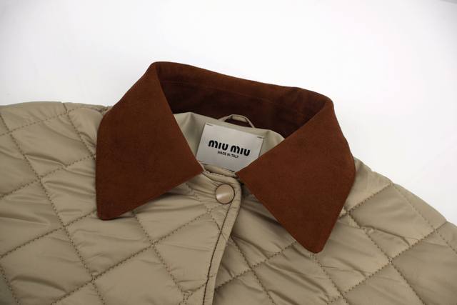 Miumiu 25Fw Collared Quilted Cotton Jacket (Ddd) The outer fabric is made of polyester fiber, the lining is made of viscose fiber, the inner filling is silk floss with quilting, the collar is made of high-gloss suede on the front and saddle leather on the back, custom buttons and accessories. The workmanship and details are excellent. (Ddd) Size: 36-38-40 (DDD)