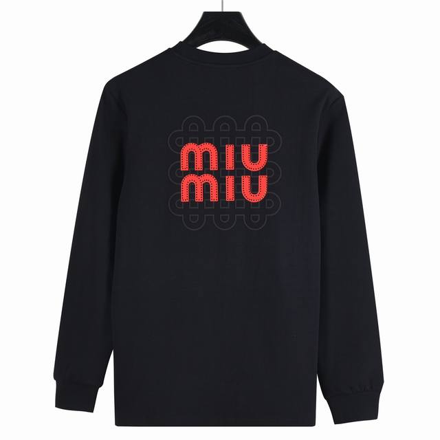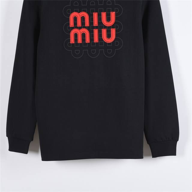 Miumiu 25Fw long-sleeved T-shirt with foamed leather embroidery and a large back logo. Made of custom-woven, custom-dyed, washed, smooth, long-staple cotton, weighing 310 grams, this is the latest counter model. This long-sleeved base shirt is made with a silky, ultra-soft finish, similar to the original. The large foamed leather embroidery on the back of the chest does not affect the breathability of the fabric. The color saturation is very high, and the custom accessories are triple-labeled. This versatile and beautiful long-sleeved loose-fitting style is slimming and flattering, suitable for all ages. Colors: Black, White. Sizes: M-Xxxl.