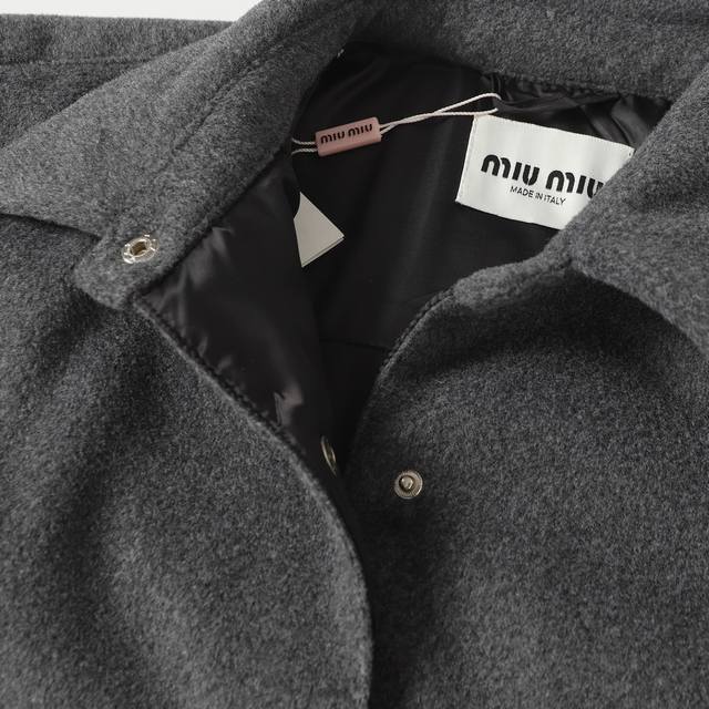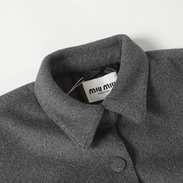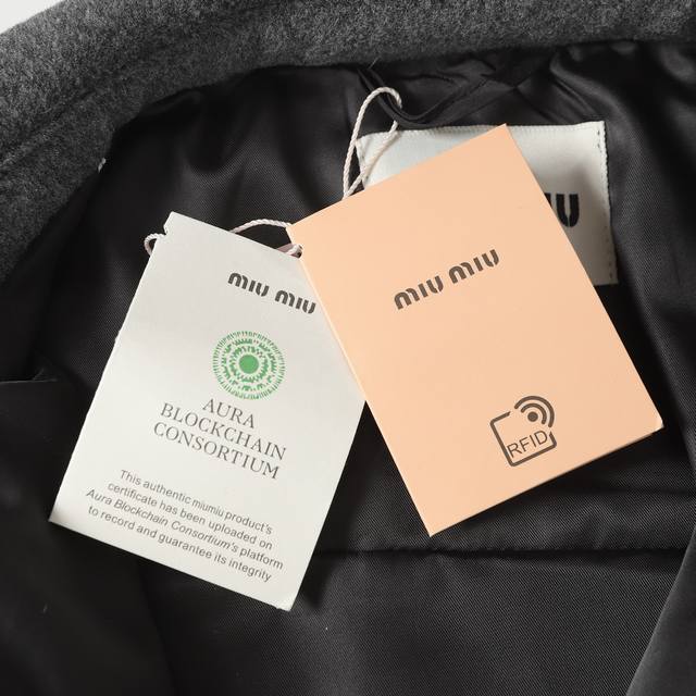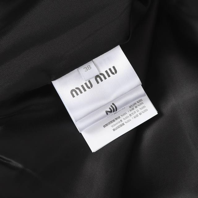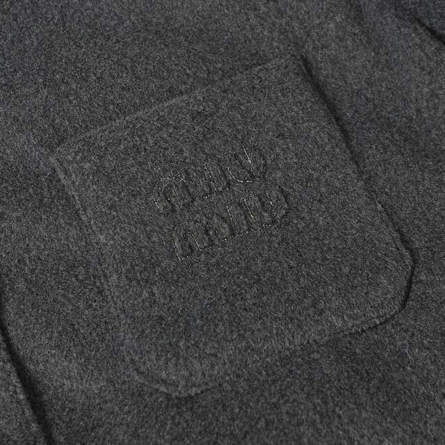 Miumiu 25Ss New Logo Chest Pocket White Duck Down Button Jacket. Outer fabric is cashmere, inner lining is white duck down. Available in two colors and all sizes. Original version purchased from Hangzhou Guozhuan for 27,500 RMB. Custom-dyed yarn. Outer yarn is 100% cashmere, inner yarn is 100% polyester. Filled with 90% standard white goose down, 280g fill weight. Embroidery is processed on imported Tajima machines, using appliqu