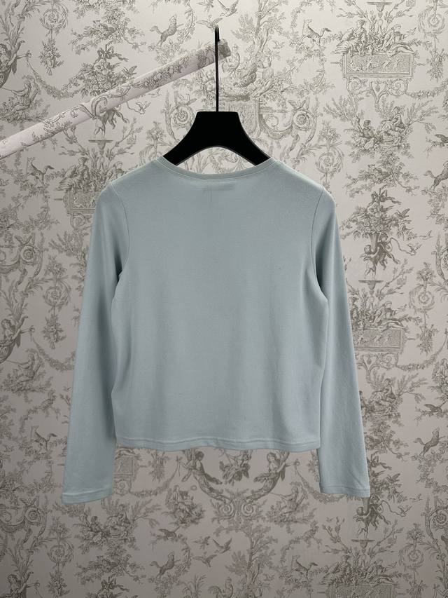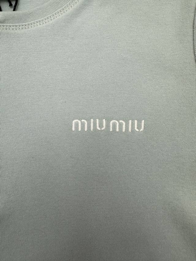 Miumiu 25Ss New Round Neck Long Sleeve Solid Color Henley Collar Cashmere Sweater, Round Neck with Miumiu Embroidery on the Chest, Women's Size: SML Ddd Warm Reminder: Women's sizes are only exchangeable.