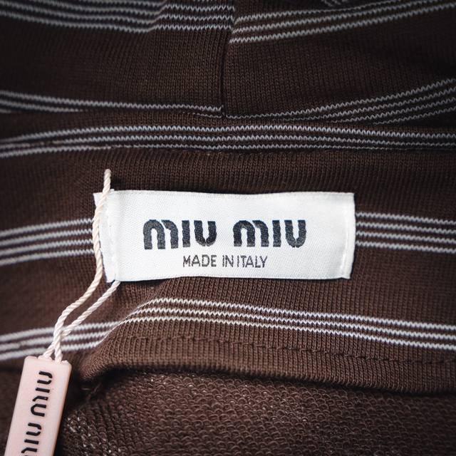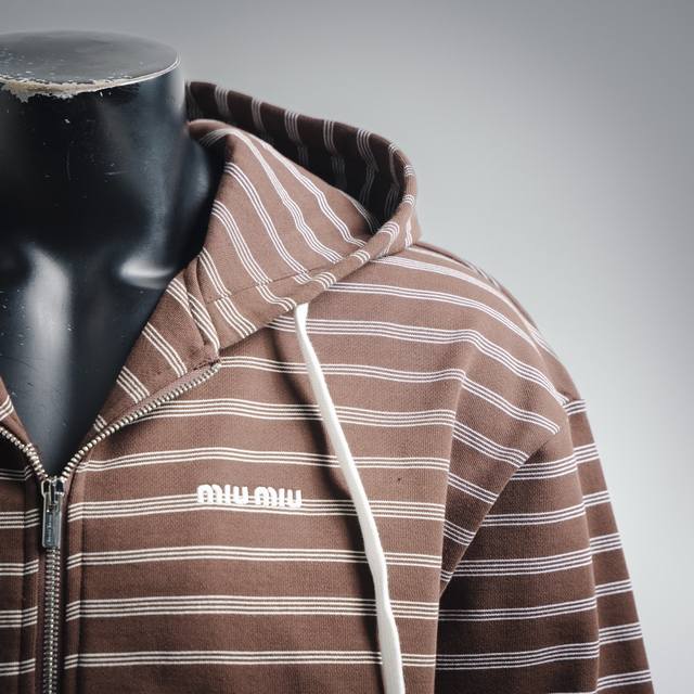 Miumiu 25Ss New Striped Logo Embroidered Hooded Zip-Up Jacket (