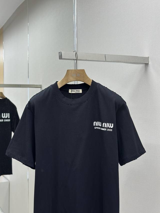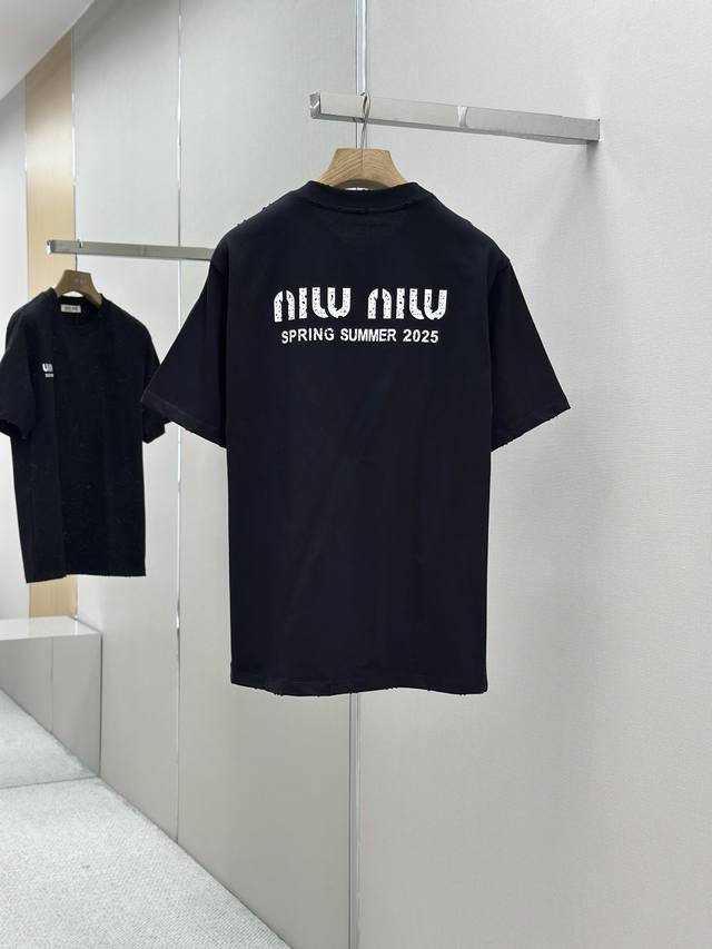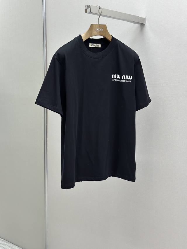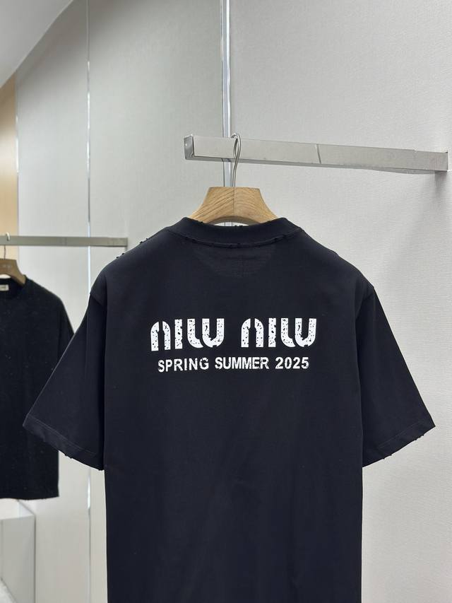 Miumiu 25Ss Spring/Summer New Arrival - Latest Short-Sleeve Crew Neck T-Shirt from Official Stores. High-end custom design, avant-garde and fashionable! Features a brand logo, meticulous craftsmanship, and high-end custom design. Made of 240g fabric, soft to the touch and comfortable to wear. Exquisite stitching at the official store level. Fine workmanship . Incredibly stylish look! A must-have item for fashionable men! Colors: Black, White. Sizes: M-XL.