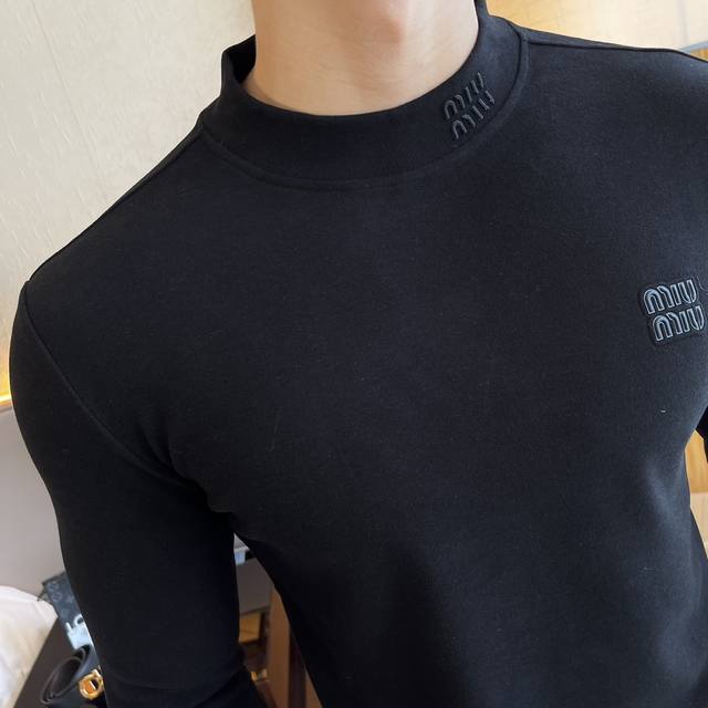MiuMiu Early Autumn New Arrival Men's Long-Sleeved Base Layer Shirt. Made with custom-made high-grade cotton fabric and featuring fashionable designer logo elements, this soft, delicate, comfortable, and warm shirt is crafted using multiple processes. A basic base layer shirt is an essential in every man's wardrobe, versatile enough to match various outfits and meet your daily needs. The design is simple yet sophisticated. Grab yours now! Standard fit, sizes M to 3XL. Maximum weight: 190 lbs!