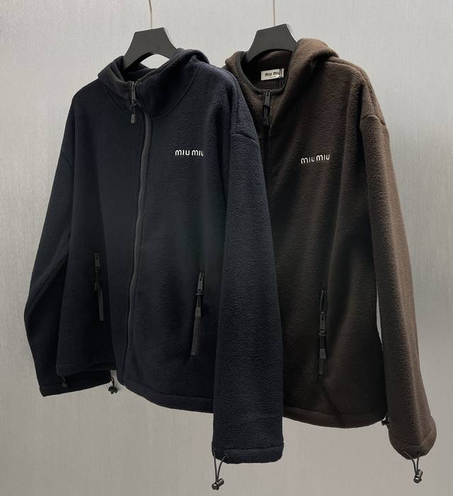Miumiu Fleece Hooded Zip-Up Jacket Ddd Size: 36-42 Ddd A classic zip-up hoodie combined with the thickness and texture of cotton fleece to create a new garment with iconic aesthetics and a spirit of authentic experimentation. DDD