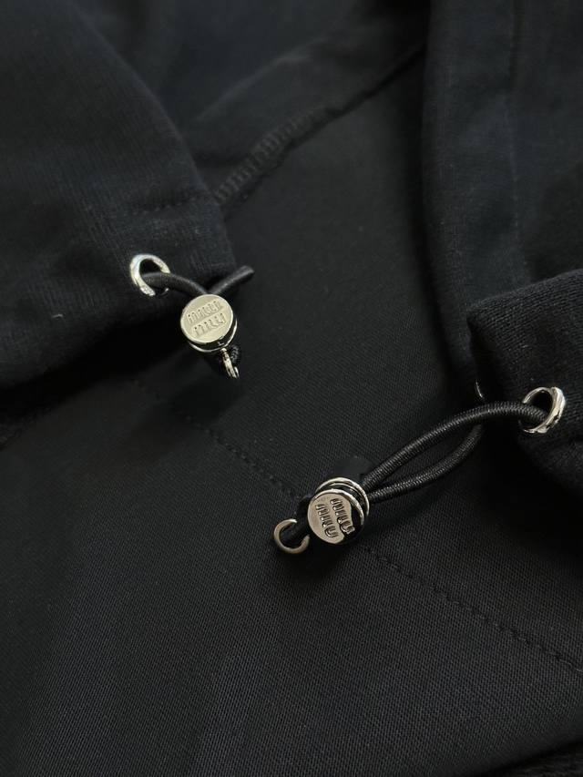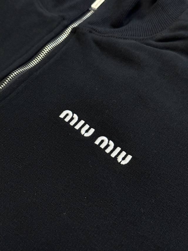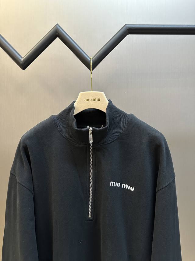 Miumiu Half-Zip High Neck Sweatshirt DDD. Made of pure cotton with a fish-scale base fabric, the fabric uses 16S single yarn + 7S single strand, 470g; paired with 21S 2*2 stretch ribbing; 380g. The surface layer uses 10S single yarn to ensure surface texture, while the bottom layer uses 16S double strand yarn to enhance strength. The surface single yarn is coarser, providing better strength and abrasion resistance, suitable as a support structure for the surface layer. The double strand yarn is stronger and anti-pilling, often used in the bottom layer to enhance the fabric's durability. DDD features a running stitch embroidery technique, primarily used to fill in long, thin, and curved lines, which can express the details and layering of the pattern. Long, thin, and curved lines, the running stitch has a strong sense of line and three-dimensionality, the stitch is vivid, lively, and has good coverage. The pattern is completed stitch by stitch with embroidery thread, the pattern is tight and has a shrinking effect. The DDD crewneck sweatshirt features a relaxed fit and a 3D tailored cut that conforms to the body's curves without being too tight or too loose. Double-needle ribbed stitching ensures the neckline's durability and comfort. The neckline zipper allows for adjustable height; the cuffs and hem also feature elastic adjustment for a unified, aesthetically pleasing look. DDD Size: Xs SML
