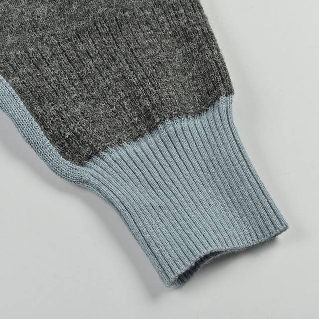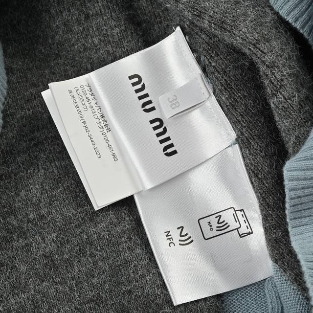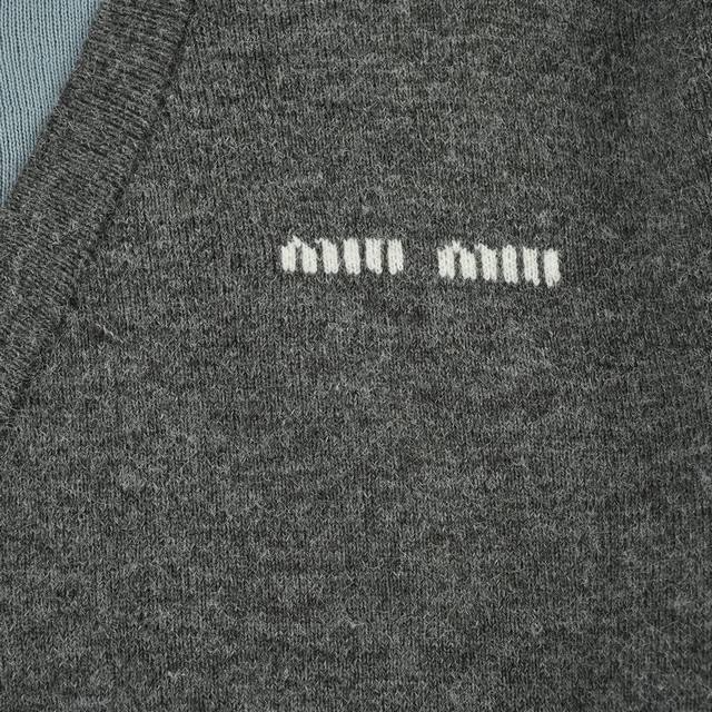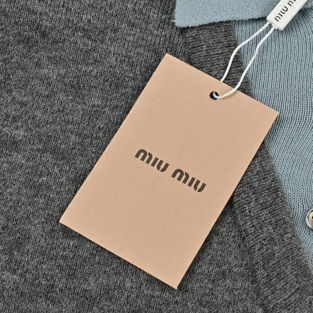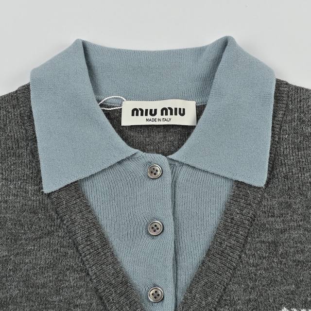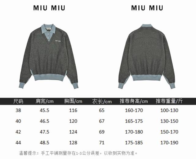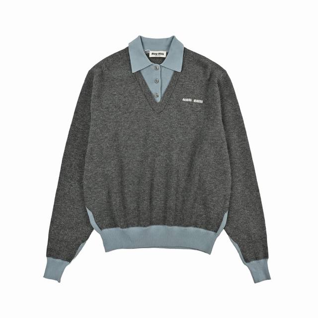 Miumiu Jacquard Logo Faux Two-Piece Cashmere Knit Polo Long-Sleeve (Ddd) The faux two-piece structure requires double-layer simultaneous knitting. The outer layer simulates a "furry" effect, while the inner layer remains smooth. (Ddd) The fabric features a seamless, three-dimensional knit without stitching: through partial increases in stitch and tuck stitching, a furry layer reminiscent of an overcoat is directly created on the garment, reducing the need for panel splicing. (Ddd) Craftsmanship: A carefully selected fabric blend is used: the main body is made of a 50% cashmere and 30% cotton blend, with the remaining parts using 20% wool, ensuring high-quality craftsmanship in every piece . The design features an oversized silhouette, employing a double-knit technique, paired with ribbed knit cuffs and hem. The polo collar and embroidered logo utilize a special intarsia technique, highlighting the brand's personality through contrasting colors. Details include a buttoned front and a long-sleeve half-raglan design, perfectly embodying Miumiu's layering aesthetic. For accessories, a 1:1 custom wash label, jacquard logo, and matching wool fabric are used to ensure a unified overall texture. This knitwear perfectly combines comfortable wear with exquisite craftsmanship, becoming a signature piece in the brand's wardrobe. Color: Grey Size: 38-44
