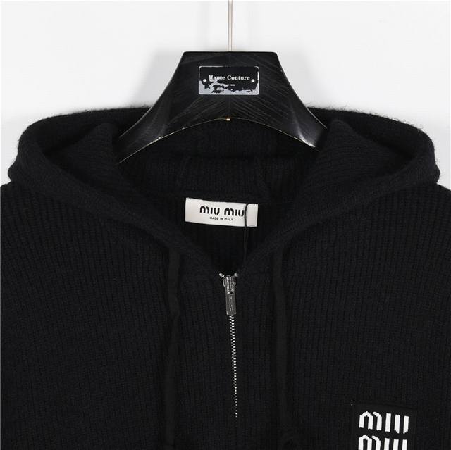 Miumiu Miu Miu 24Fw Patch Logo Embroidered Zipper Hooded Sweater Jacket