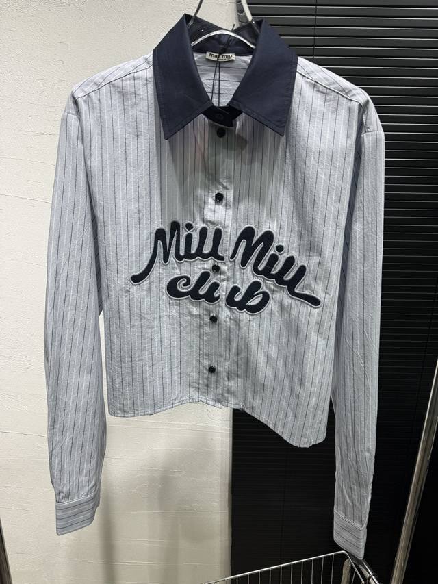 Miumiu Miu Miu 25Ss new shirt with burnt flower logo embroidery shirt, invincible heavy craftsmanship, collar color matching, invincible foreign style, straight shoulder, suitable for all sizes