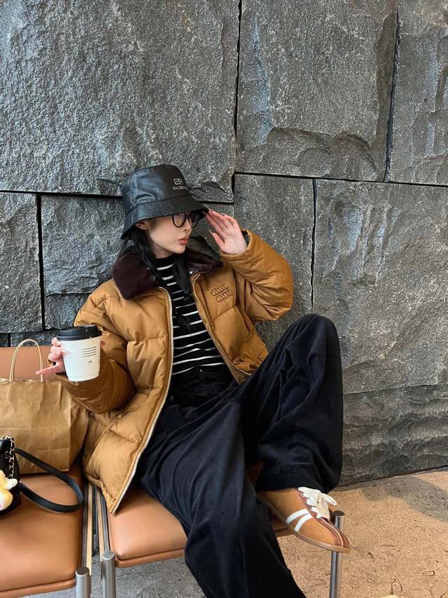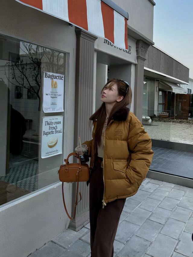 Miumiu Miu Miu Fw's new autumn/winter show model, a double-layer fur collar down jacket in ginger yellow, a truly retro and stylish down jacket with a rich texture. The fur collar is detachable, the filling is generously filled for warmth, and the custom hardware zipper gives it a fashionable, intellectual, and girlish style! One size fits all (