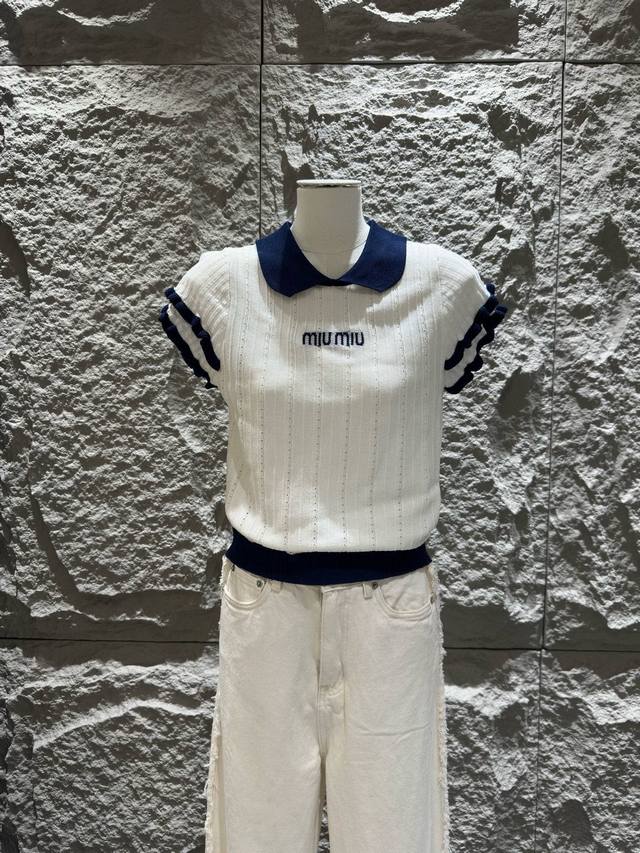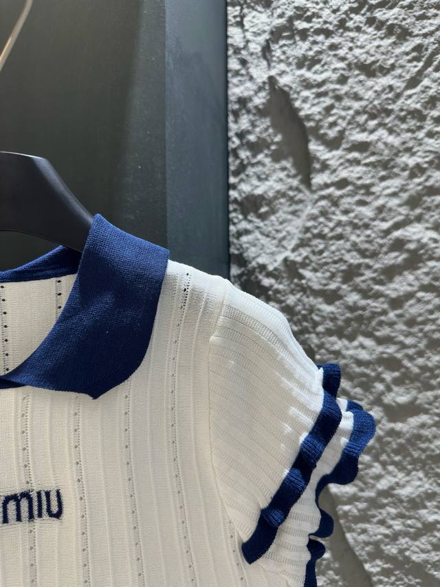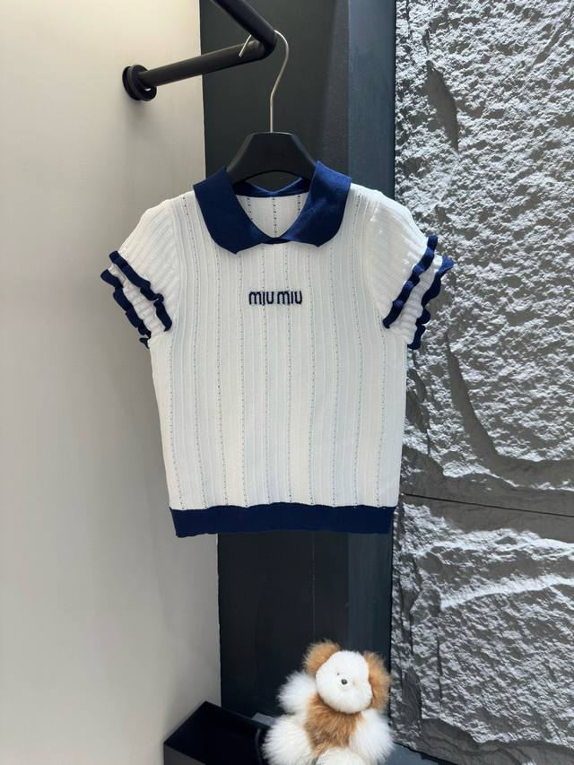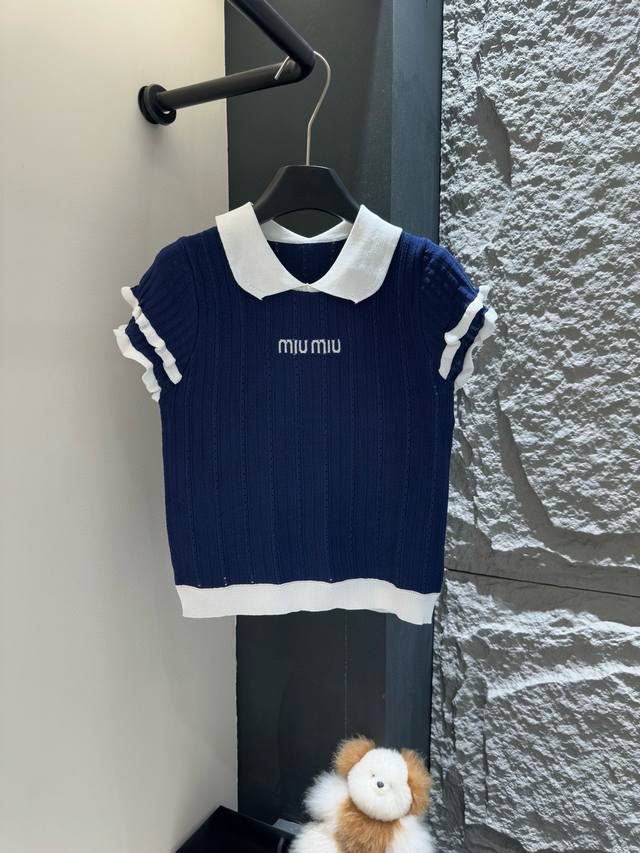 Miumiu Miu Miu letter jacquard lace sleeves lapel knitted short sleeves