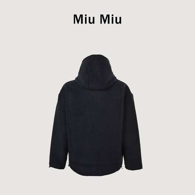 Miumiu Navy Blue Lambswool DDD 380g Cloud-like Fleece Classic Embroidered Letter Hooded Jacket. Featured by numerous celebrities and fashion bloggers. A must-have item for many. DDD Fabric: Original custom-made, replicating every detail. 380g lambswool. 18% Wool, 82% Polyester. DDD Hardware: All custom-made Miu zippers, buttons, logo, metal, spring-loaded adjustable buckle. DDD Exudes a high-end, modern vibe; this is a must-have item for you. DDD Size: S-XL DDD
