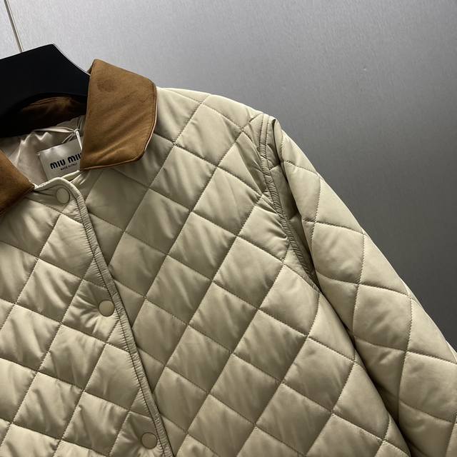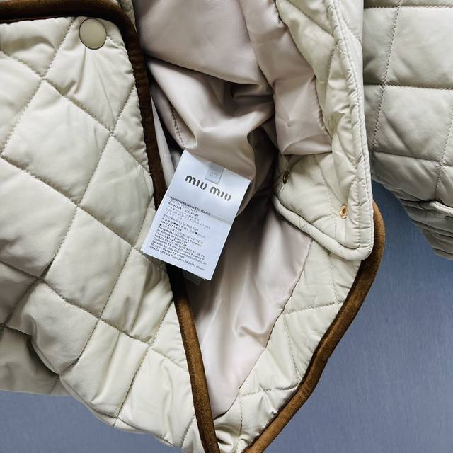 Miumiu Quilted Tech Ponge Jacket Ddd Size: S-XL Ddd This jacket reinterprets the classic quilted down jacket, standing out with its lightweight and soft, relaxed fit, complemented by understated suede and Nappa leather details in color and texture. DDD