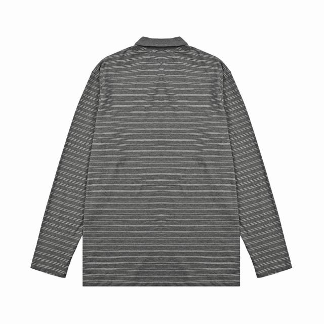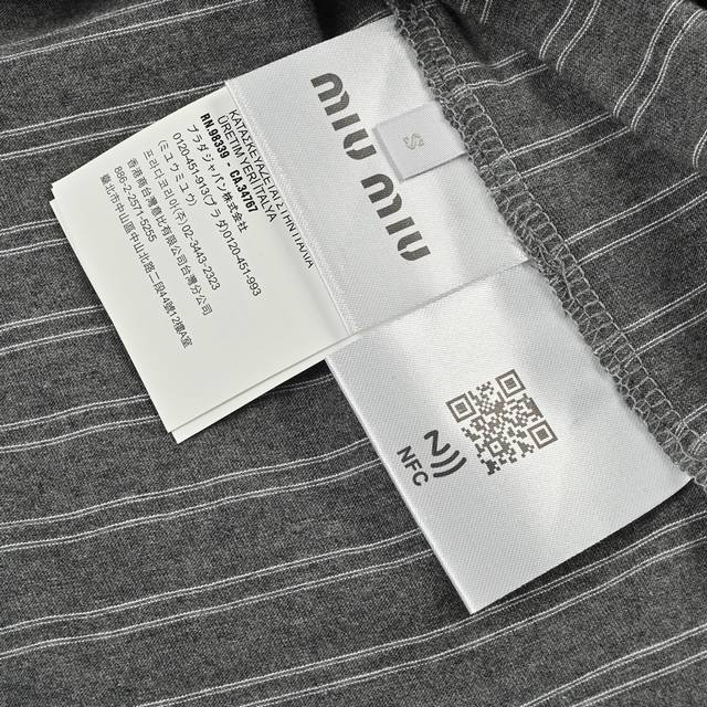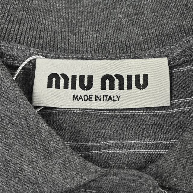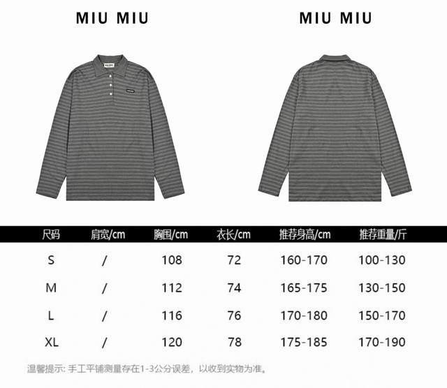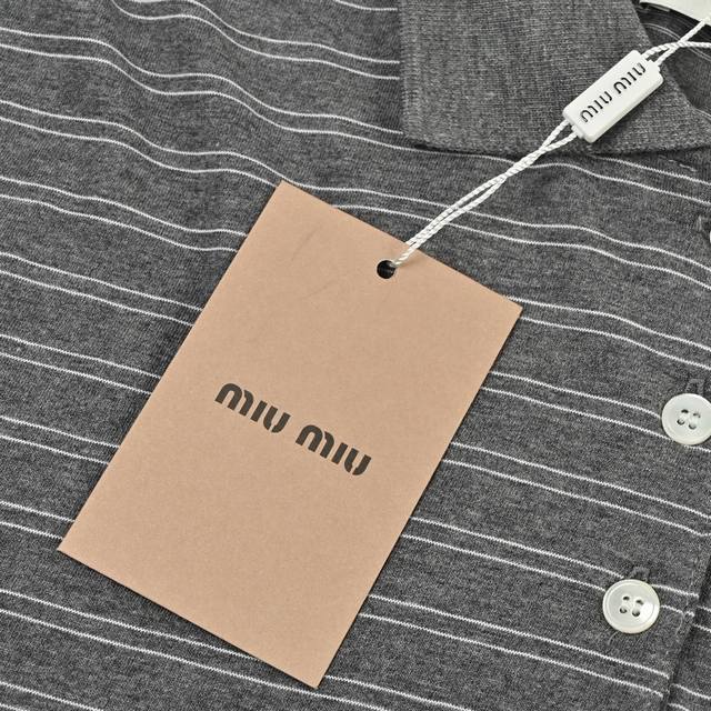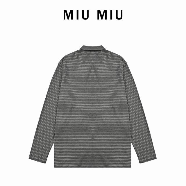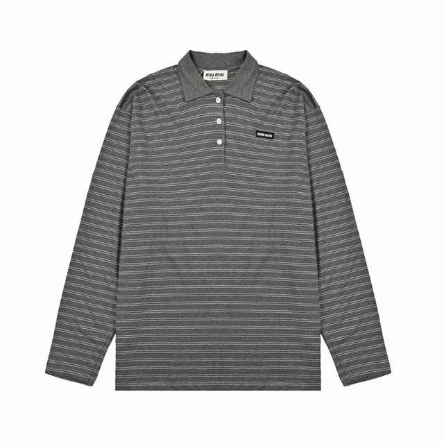 Miumiu25Ss Striped Polo Shirt with Label, Long Sleeve T-Shirt, 210g Custom-woven and Dyed 32-count Cotton Double Yarn! Striped Cut! Letter Logo Applique on Chest! Custom Shell Buttons! Relaxed and Casual! Loose Fit! Sizes: S-XL