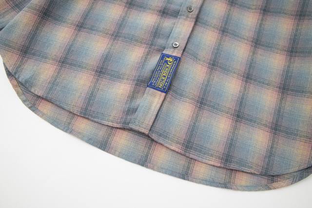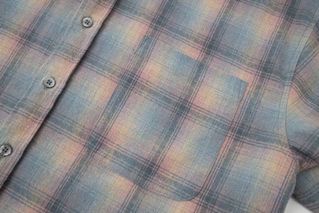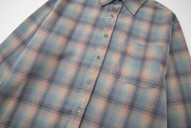 Mm6. Jing Boran's same style Maisonmargiel* four-corner logo stitching sunset pink plaid long-sleeved wool shirt. Note: Original replica, the garment contains 35% wool. Do not machine wash or hand wash, dry clean recommended, do not expose to direct sunlight. Sizes: 46 48 50 52