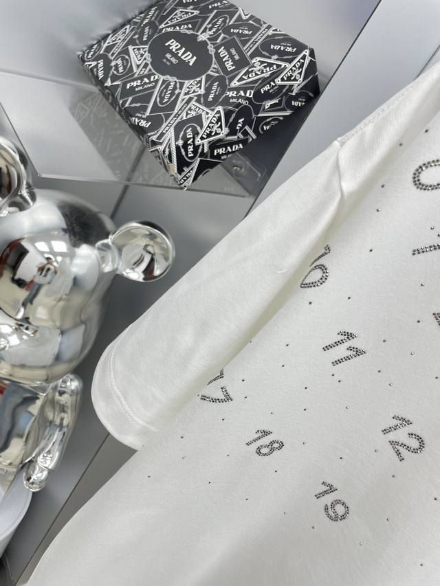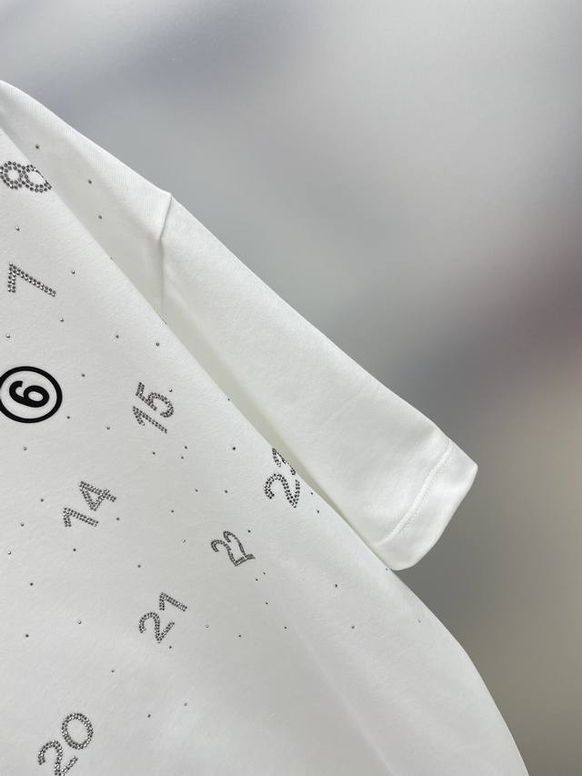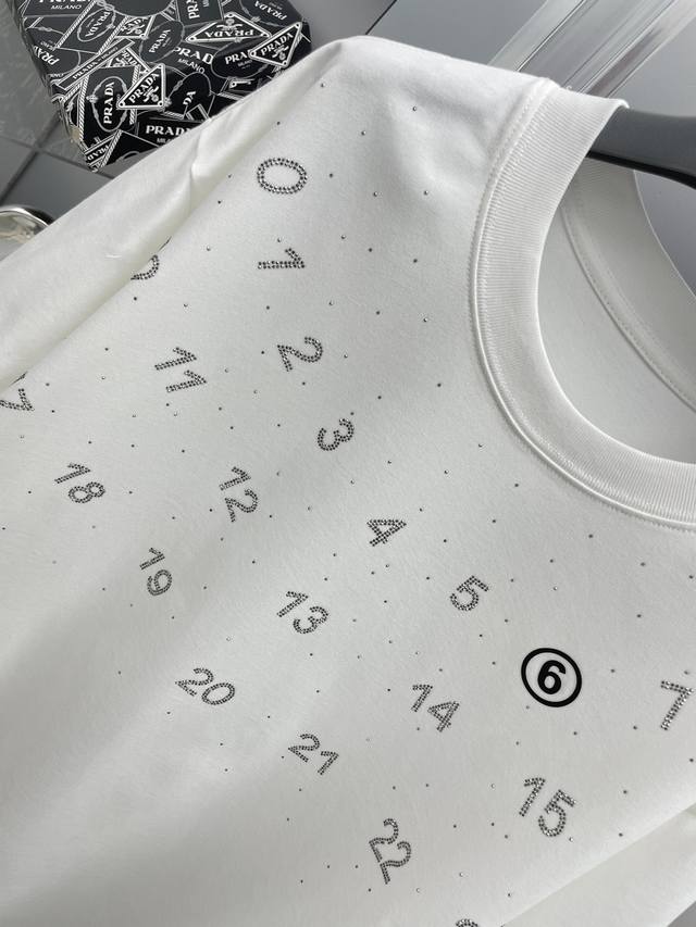 Mm6 Margiela 2025 Summer New Calendar Rhinestone Number Logo Short-Sleeve Tee. Available in stores. Original quality, high-end item. Fashionable imported original technical fabric, comfortable and breathable. Original custom hardware accessories. Stylish and handsome. All tags are complete. Recommended style, extremely high-end . Available in two colors and sizes: M-3XL.