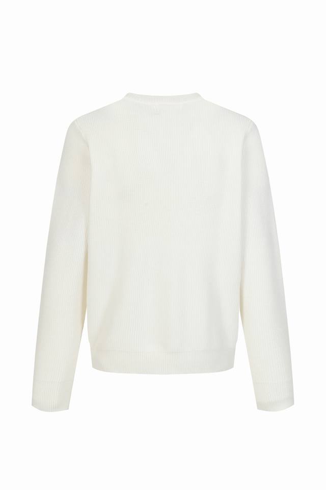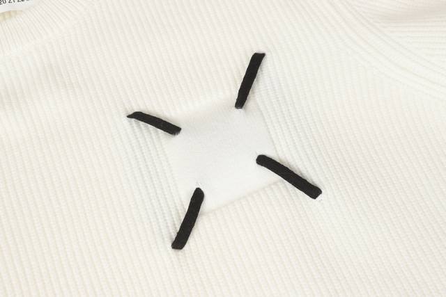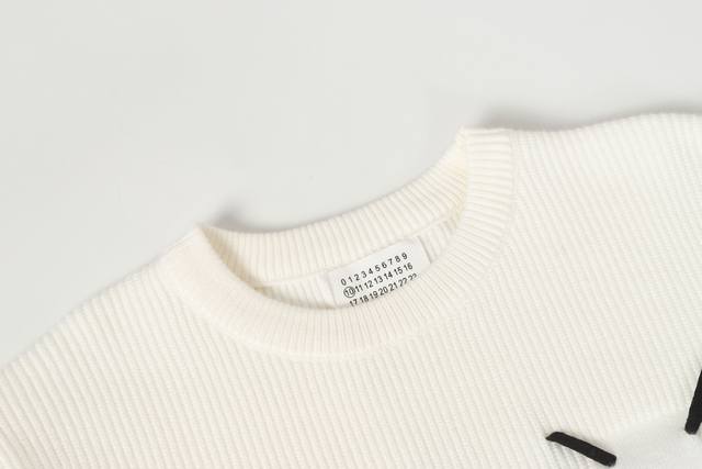 Mm6 Margiela four-corner logo crew neck sweater. Made with a special washing process, it's incredibly soft and skin-friendly, featuring a standard 3-needle knit. It's comfortable against the skin, versatile, and a must-have autumn/winter piece. Unisex. Colors: Black, Warm White. Sizes: S, M, L.