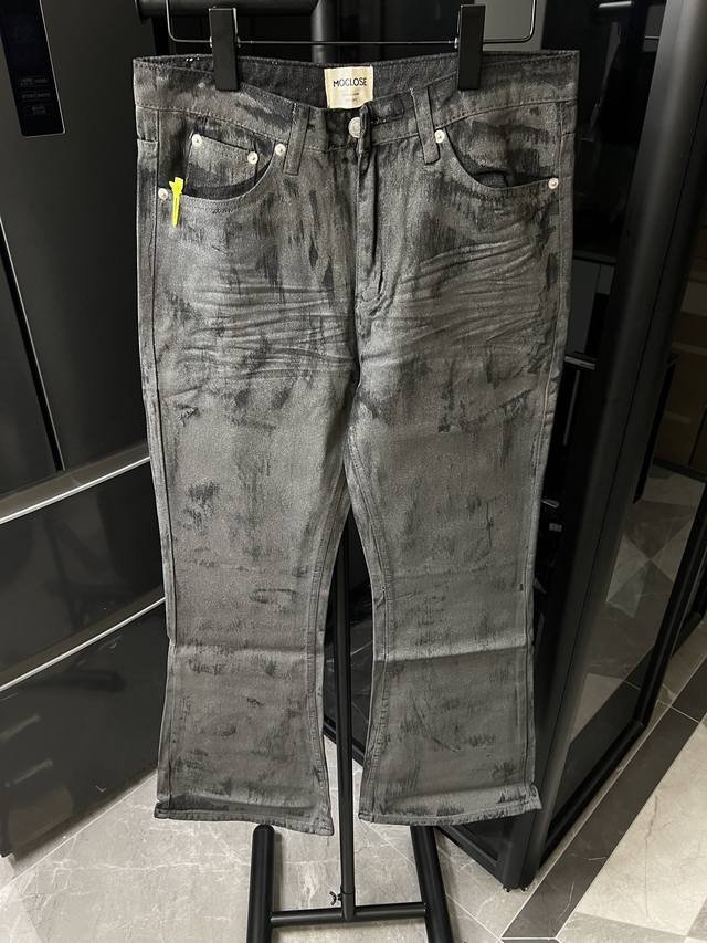 Moclose 25Fw American Retro Distressed Waxed Paint Dirty Jeans Black Sole Size: