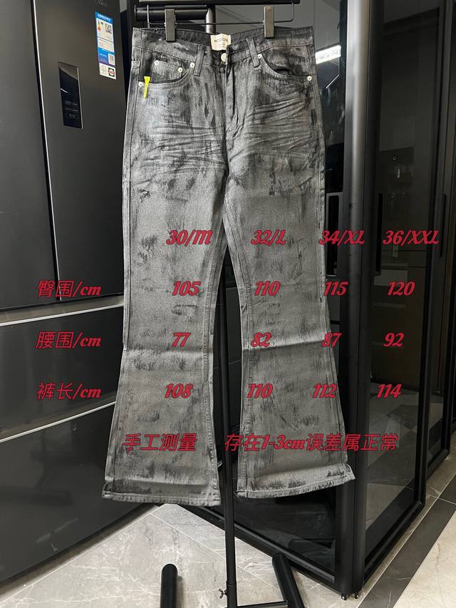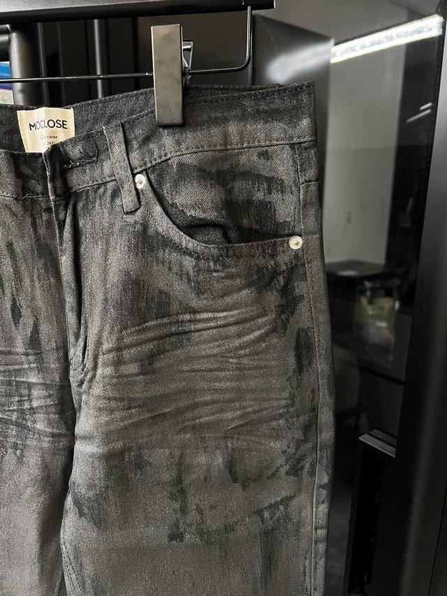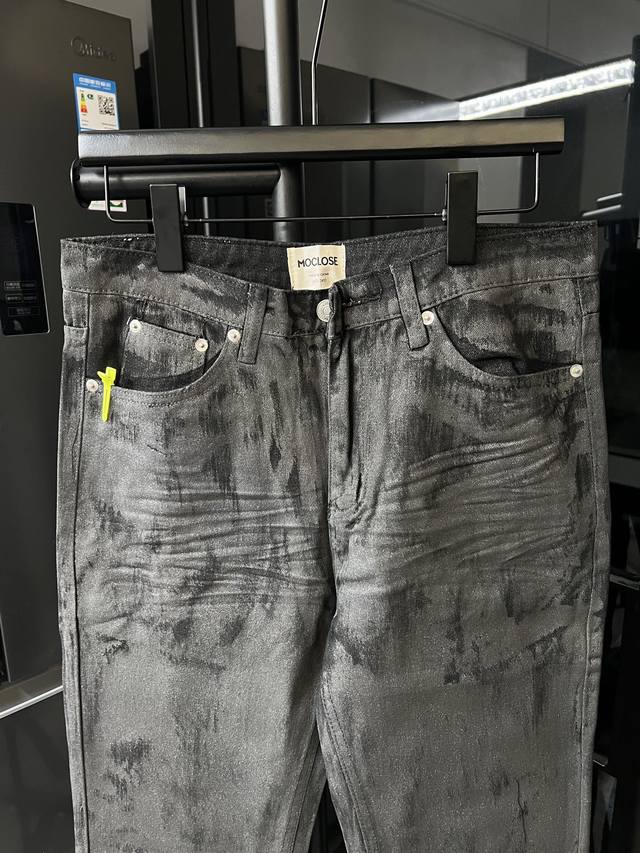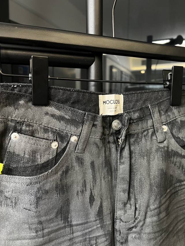 Moclose 25Fw American Retro Distressed Waxed Paint Dirty Jeans Black Sole DDD Size: 30 32 34 36 (Corresponds to M-XXL) See picture 9 for detailed size information DDD