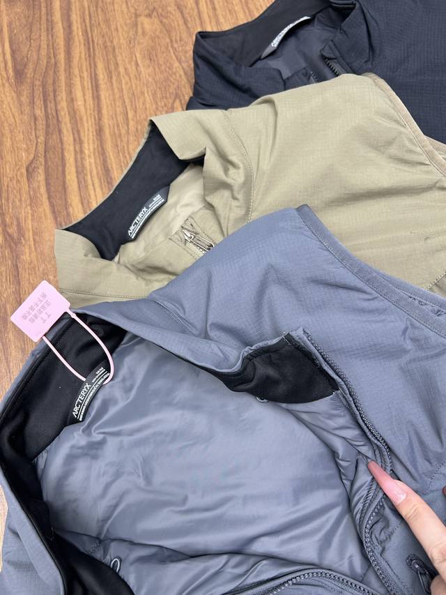 Model + Details, Arcteryx Atom Lt Vest Gen 2.1 Leaf Series Stand-Up Collar Padded Vest (Couple Style). Made from original, custom-woven and dyed nylon fabric. Developed from the original, custom-made labels, collar tags, washes, hangtags, hardware, and more. From cutting and stitching to sewing, the craftsmanship is 1:1.