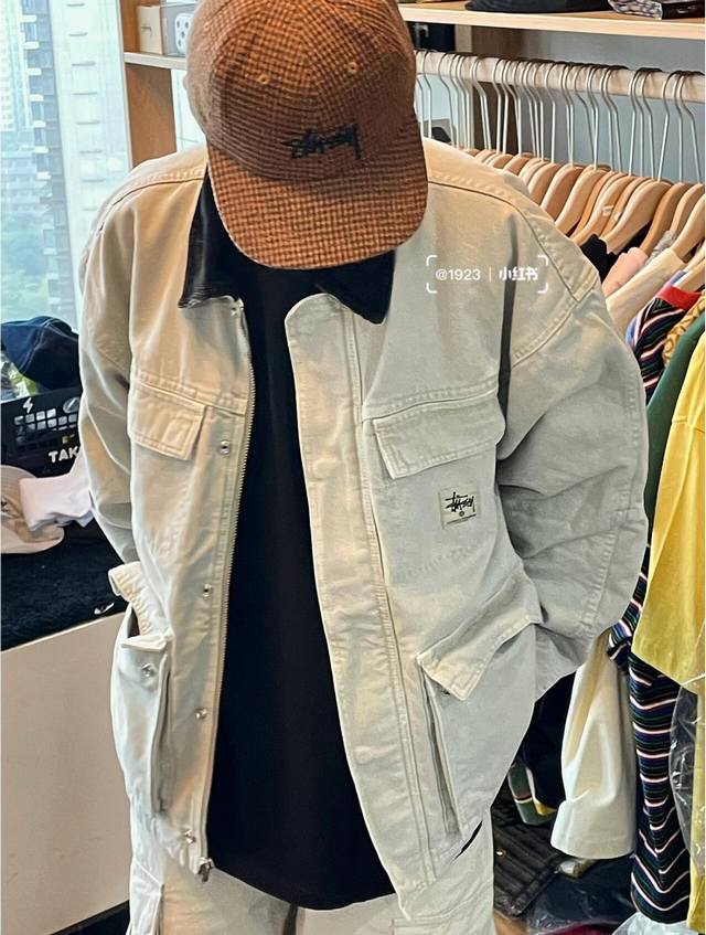 Stussy Washed Canvas Shop Jacke, a vintage heavy-duty workwear washed cotton jacket. A must-have for workwear lovers, the American-style Stussy has recently embraced the workwear jacket trend, rivaling the recent Carhart craze.
