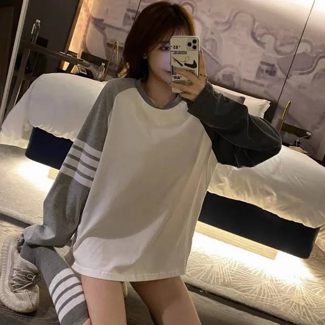 Model New Thom Browne Tb's new colorblock four-stripe contrasting long-sleeved
