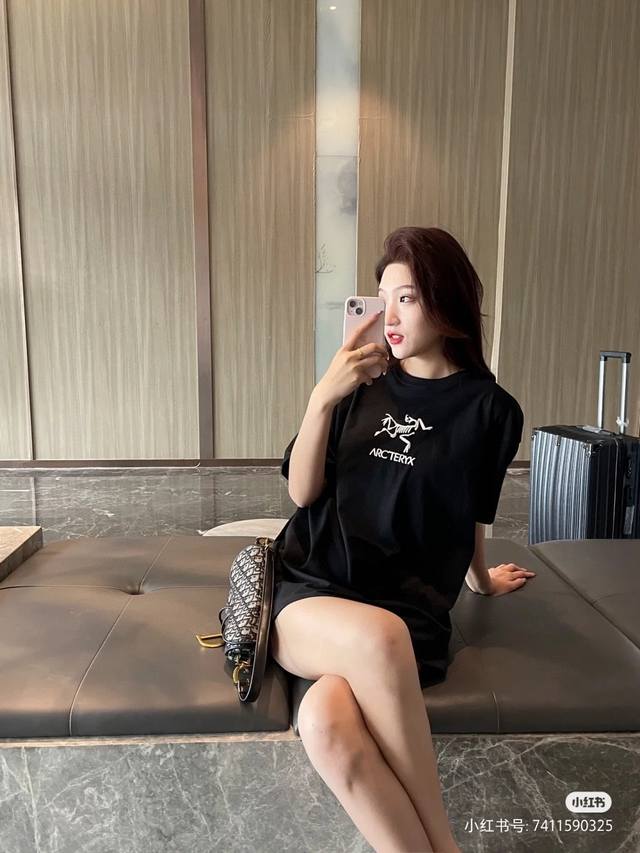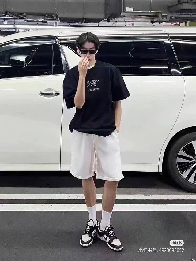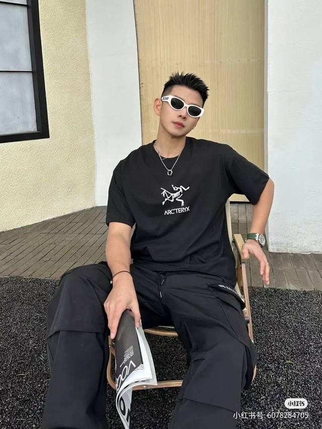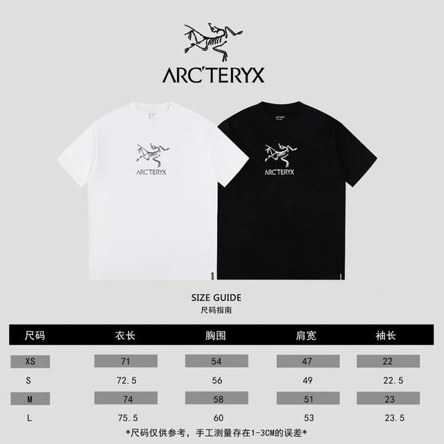 Model No. Ys52 High version Arc'teryx Arcteryx 250g double yarn fabric Arcteryx Captive Arc'word Ls Shirt M Captive series letter pattern Logo printing round neck short-sleeved T-shirt for men and women original customized accessories tag packaging bag washing water wheat three standards complete black white Size Xs SML