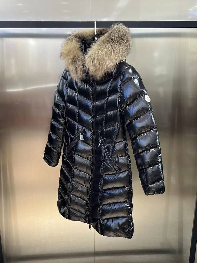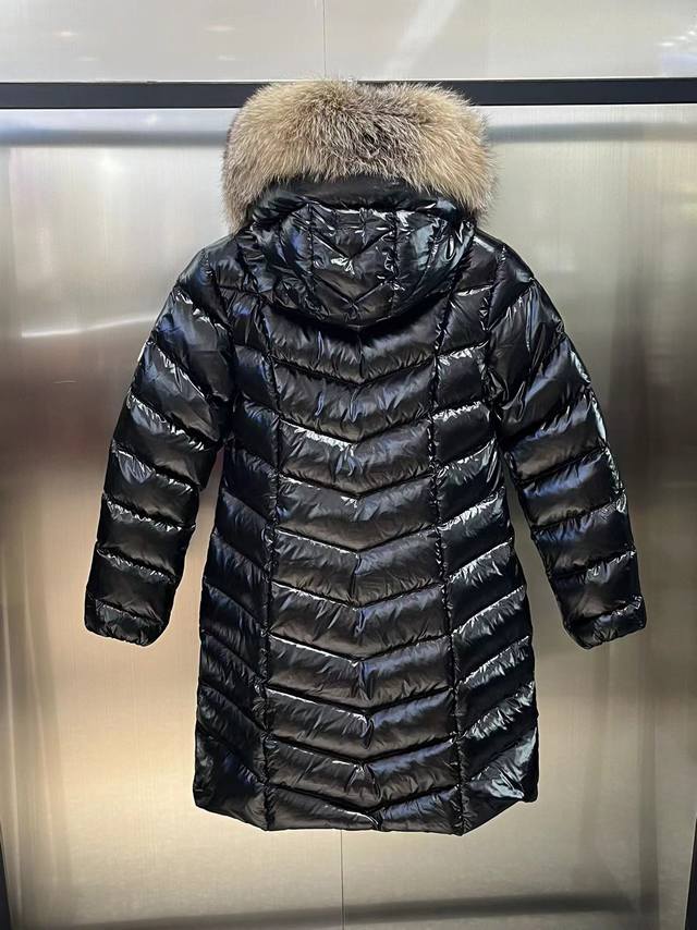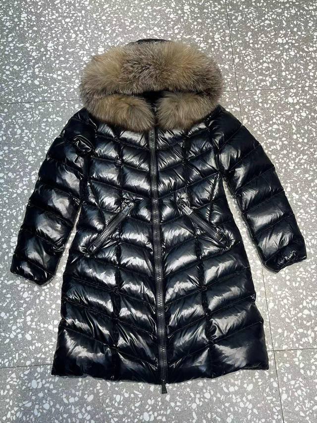 Mon* Fulmarus Women's Long Hooded Down Jacket (Ready Stock, Ships Immediately) When you need extra warmth without sacrificing your style, choose Fulmarus! This long coat, made of patent nylon, features a unique herringbone quilting for warmth and style. The eye-catching detail is its frosty fox fur trim on the hood, providing warmth in the cold winter. (Japanese standard, 90% down filling. Sizes: 1-4. Colors: Black with black fur, yellow fox fur, interchangeable.)