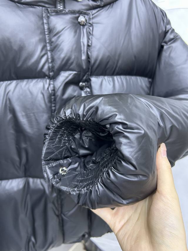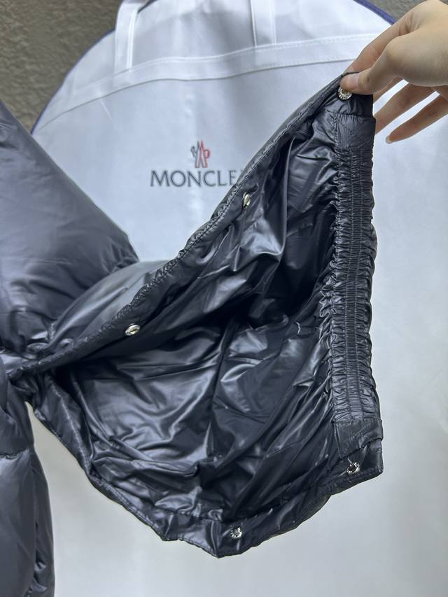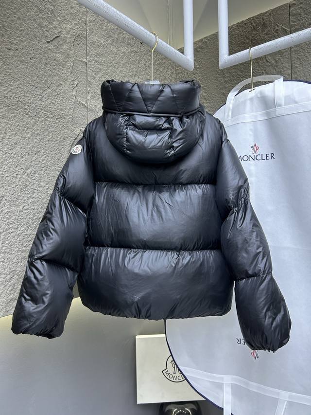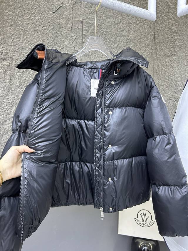 Mon*Ler Borey's new short down jacket, crafted from warm yet lightweight nylon fabric with a luxurious sheen. This short down jacket features adjustable sleeves that can be opened to wear as a cape. The hood has a wide brim, inspired by classic parkas, for warmth and comfort. Two-in-one design, oversized silhouette. Colors: Camel, Black. Sizes: 0, 1, 2.