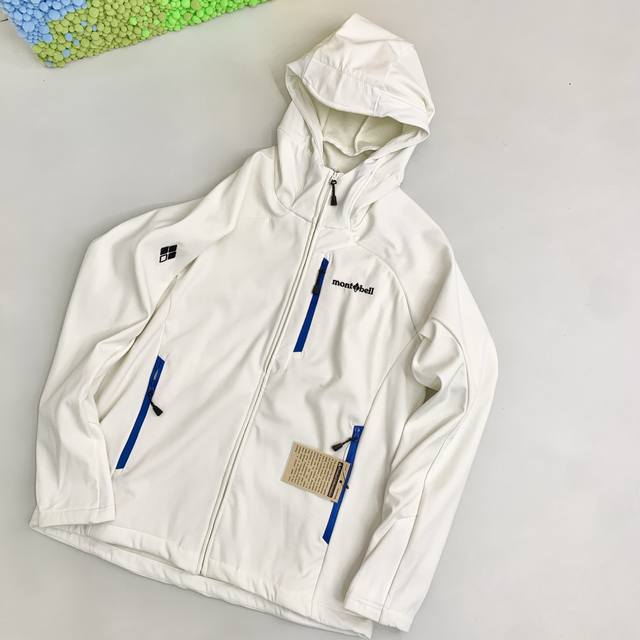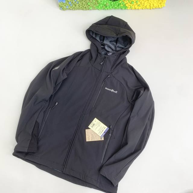 Montbell Climapro Dopamine style letter print windproof warm hooded fleece soft shell hiking jacket unisex