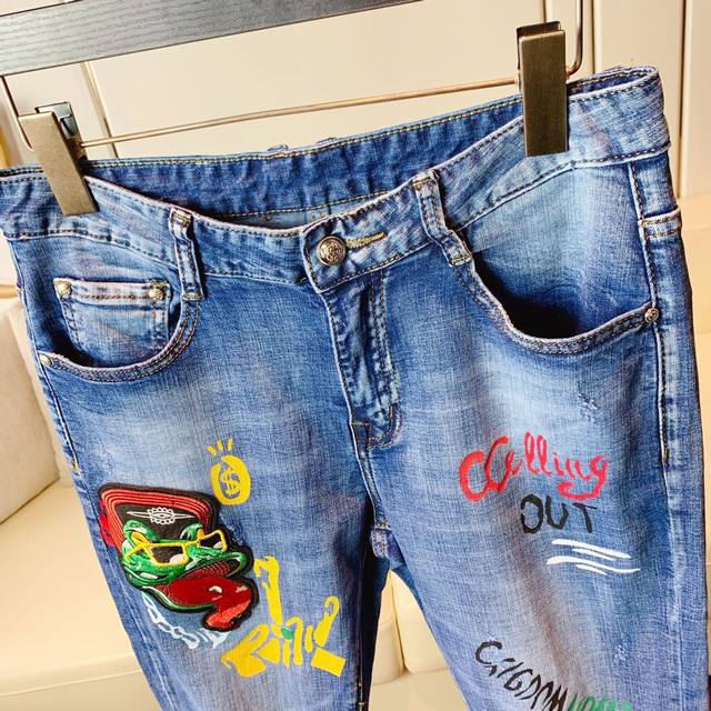 Moschino Jeans, top-quality imported original jeans, crafted with original techniques, featuring heavy-duty embroidered labels and original hardware. Made with custom-made denim fabric, perfectly matching the original retail version. We welcome you to try them on at a boutique before purchasing. Quality products stand up to comparison. Sizes: 28-36 DDD
