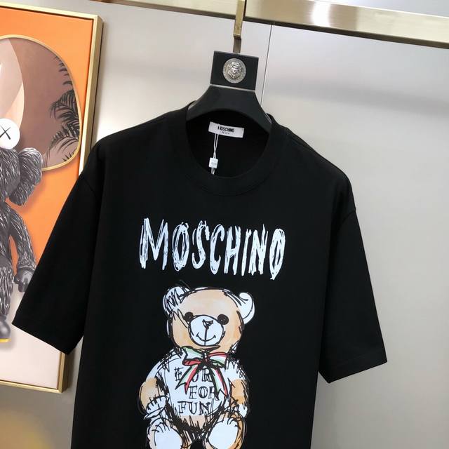 M*Schino 2025 Spring/Summer New Original Men's Crew Neck Short Sleeve T-Shirt, Sold in Department Stores, High-End Quality, High Version, Os Fit, Wide Fit, Popular Style, Printed Letter Logo Pattern Design, Customized Imported Double Stretch 100% Pure Cotton Fabric, Soft and Delicate to the Touch, Skin-Friendly and Comfortable to Wear, Factory Direct, Exquisite Workmanship, Very Handsome and Stylish, Essential Item for Men, All Labels Complete, Sizes: S-3XL (Runs Large, Largest Size Suitable for Approximately 220 lbs), Please Provide Height and Weight When Ordering, Black, White,