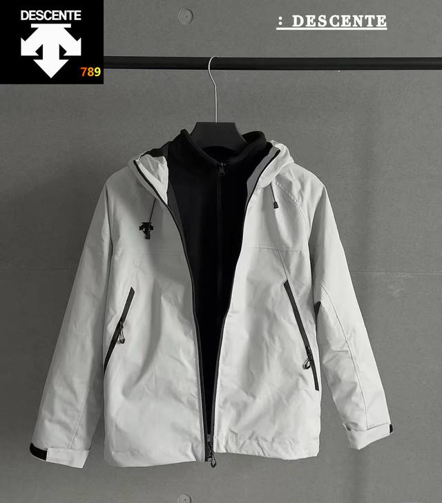 New Ddd 3-in-1 Descente Autumn/Winter Men's and Women's Windproof and Waterproof Jacket, 3-in-1 Hooded Jacket, Urban Functional, Outdoor Gear, Truly Stylish! Couple Version, Polyester Fiber Technical Fabric with Internal Lining, Waterproof, Tear-resistant, Water-repellent, Three-proof, Loose Fit, Functional Cut with Horizontal Three-Dimensional Cut, Slimming and Concealing, Outer Silhouette, Hooded with Drawstring and Raglan Sleeves, Functional Cutting on Shoulders, Horizontal Three-Dimensional Cutting on Chest, Functional Cutting on Underarms, Functional Cutting on Back with Multiple Panels, Two Side Slanted Pockets, Velcro Cuffs, Double-sided Sealed Zippers at the Placket and Cuffs! The clothes are truly fantastic, the quality is truly excellent! Couple Version, Highly Recommended! Colors: Black, White, Black and White Color Blocking Sizes: M-3XL
