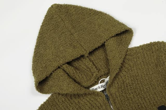 New addition: Dark green DDD Rest&Recreation retro classic embroidered logo soft teddy fleece hooded zip-up knit cardigan, short, slim fit, versatile and flattering. Exclusive online, highest quality DDD DDD Style number: 5509 DDD Price: p DDD Size: One size F DDD Colors: Black, off-white, camel DDD