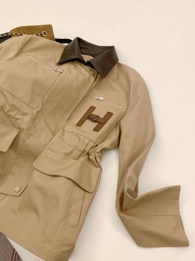 Customized Yb imported windbreaker material with delicate texture and full drape, more comfortable to wear Hidden zipper jacket version with dropped shoulders and lapel, loose design, large body, light khaki color, woven leather collar, collision design with rich layers, suitable for autumn and winter Maillard barn style casual wear, double pockets on the hem with zipper for increased capacity, more eye-catching and fashionable, the letter logo on the chest is more eye-catching, and the exquisite and durable details highlight the brand style. The wear is relaxed and fashionable, customized fabrics and accessories, look for the higher version