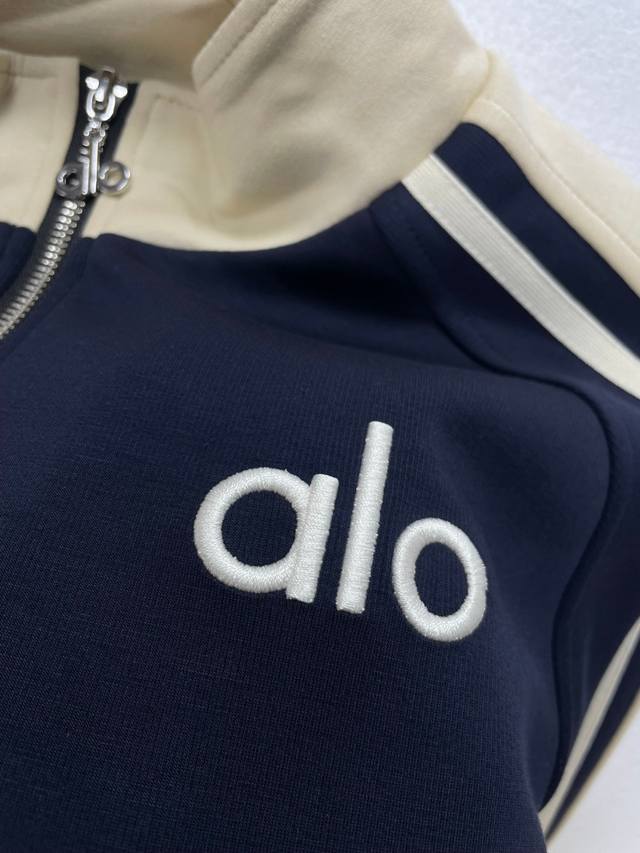 Alo- new embroidered sweatshirt jacket, unisex outdoor leisure style, soft and sticky fabric, comfortable to the touch, heavy and textured in the hand, high density structure, embroidery on the chest, three-dimensional large flowers on the back, very craftsmanship and design sense, original zipper customization, color matching ribbon, many elements are given to one body, inner pockets, great attention to details
