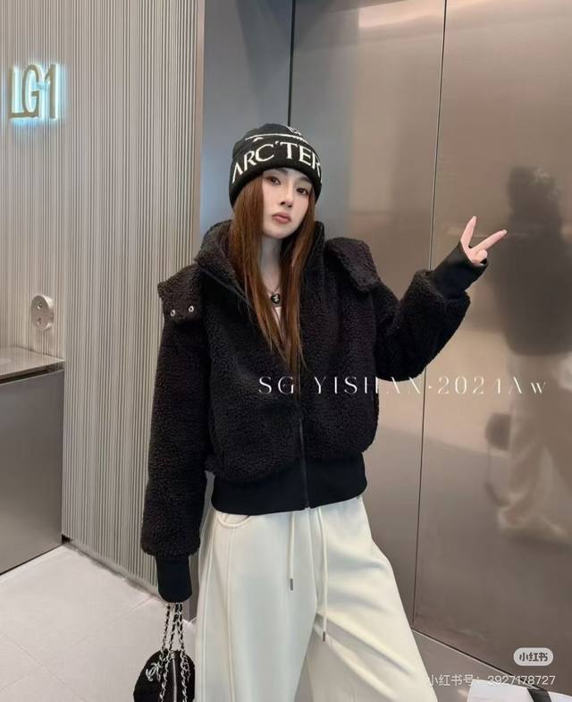 New Arrival! Ddd Ddd Alo Yoga 25Fw Autumn/Winter Women's Fleece Teddy Lamb Wool Hooded Coat. Exclusive High-Quality Production! A winter fashionista's favorite and a cost-effective choice. Selected environmentally friendly lamb wool material, combining warmth and style. Large-grain lamb wool feels comfortable to the touch, with strong warmth retention. The texture is exceptionally soft, smooth, and elastic, and it is not easy to shed. The environmentally friendly lamb wool grains are obvious. Ddd Thickened and dense, full of texture. Ddd Airtight design with a full-length lining. Ddd Different lamb wool qualities vary greatly. Ddd Dense fleece will not show the lining in the middle. Ddd Maximum comfort and warmth, high visual experience and cold protection performance, while maintaining a light posture and a warm luster. The three-dimensional cut short silhouette is easy for petite women to wear. The length is simple, elegant, relaxed and unrestrained, making the image more modern and full of a strong aura. Highly recommended! Jisoo's popular shearling coat
